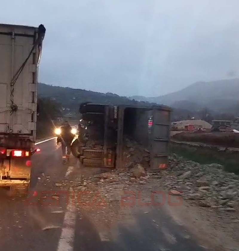 Vozač teretnog vozila je E. K. (23), a vozač automobila E. M. (82). U toku je (u 18 sati) totalni prekid saobraćaja, koji se odvija alternativnim pravcem, kroz naselje Radakovo, a obavlja se uviđaj.