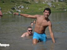 Na  naše krajnje odredište, Veliko jezero, stigli smo u 14.30 h. Jezero je na nadmorskoj visini od 1.550 metara. Dužina jezera je oko 300 metara, širina oko 150 metara, a dubina oko 6 metara. U nijansama zelene boje sa pogledom na Veliko jezero te toploj dobrodošlici  domaćina „kuće spasa“ na samoj obali Velikog jezera, uživali smo cijelih sat i 45 minuta. Veliko jezero simbol netaknute prirode i njene ljepote, njegova maslinasto zelena boje te lagano talasasto kretanje površine vode uz blagi povjetarac namamili su učesnike da se prepuste netaknutoj prirodi i toploj vodi, usljed čega je slijedilo kupanje.