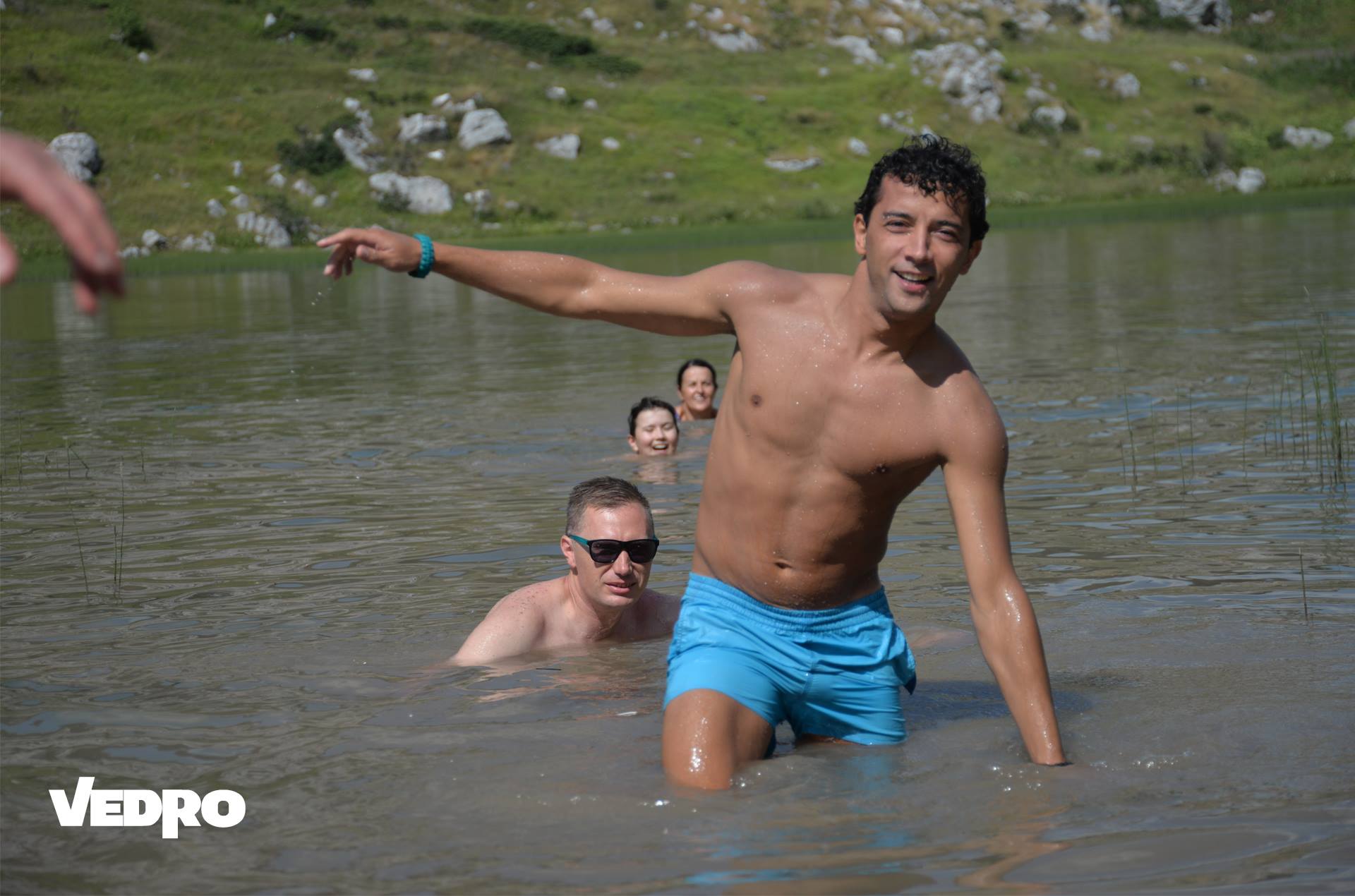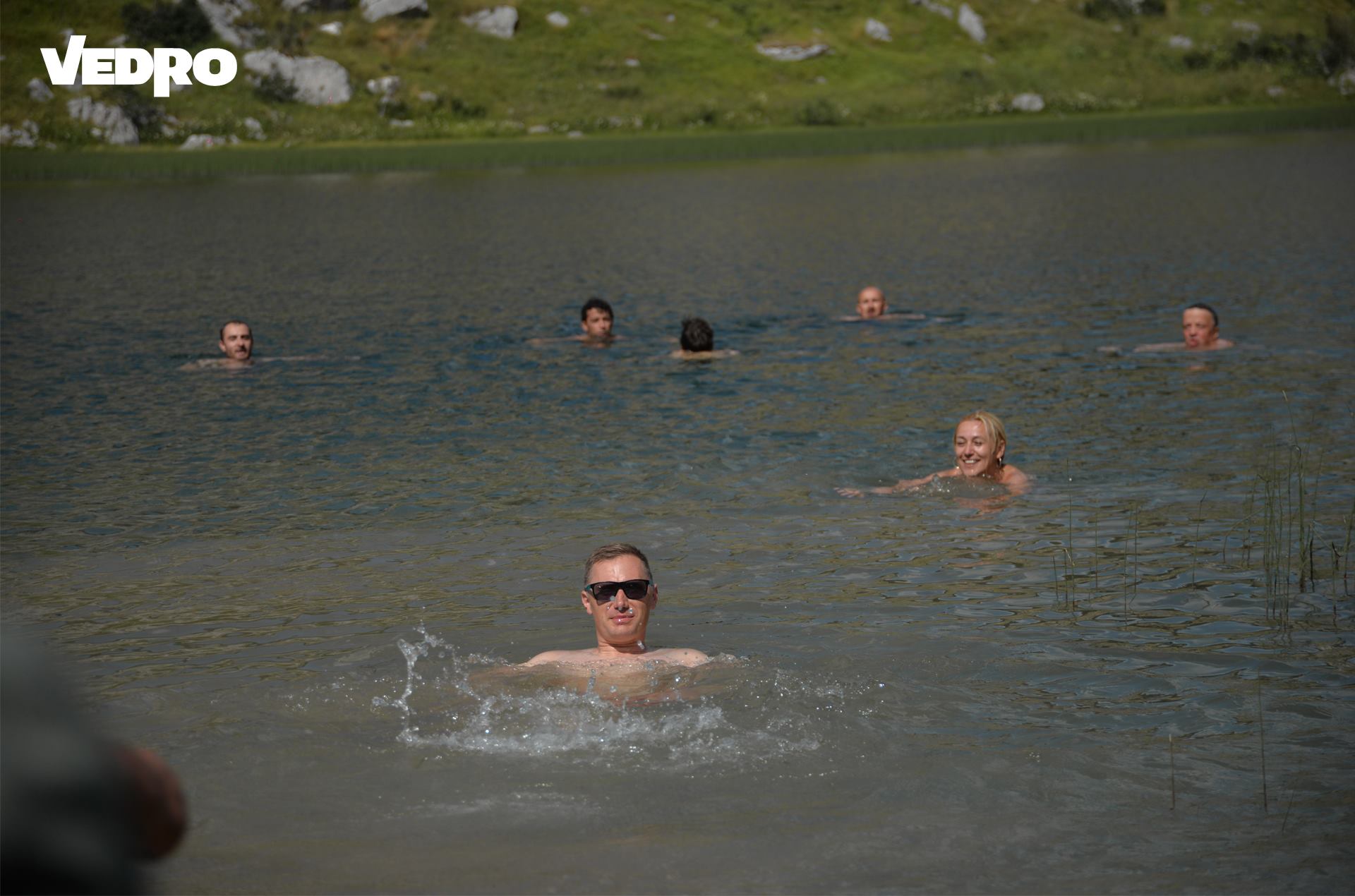 Na  naše krajnje odredište, Veliko jezero, stigli smo u 14.30 h. Jezero je na nadmorskoj visini od 1.550 metara. Dužina jezera je oko 300 metara, širina oko 150 metara, a dubina oko 6 metara. U nijansama zelene boje sa pogledom na Veliko jezero te toploj dobrodošlici  domaćina „kuće spasa“ na samoj obali Velikog jezera, uživali smo cijelih sat i 45 minuta. Veliko jezero simbol netaknute prirode i njene ljepote, njegova maslinasto zelena boje te lagano talasasto kretanje površine vode uz blagi povjetarac namamili su učesnike da se prepuste netaknutoj prirodi i toploj vodi, usljed čega je slijedilo kupanje.