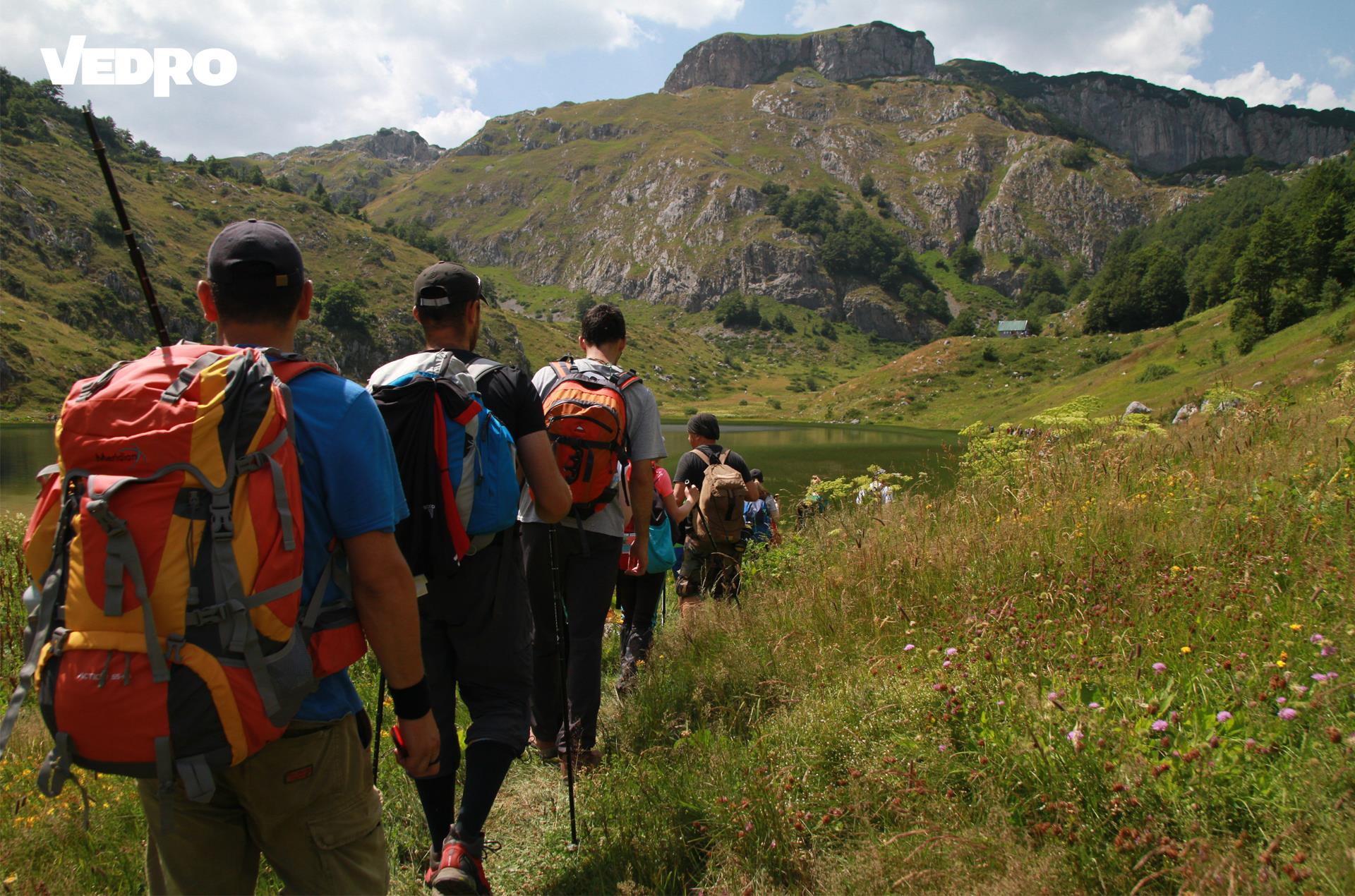 Na putu ka Velikom jezeru, napravili smo 15-o minutni predah na prvom planinarskom domu „Sustavac“, a nakoh sat vremena pješačenja i pauzu na drugom planinarskom domu  „Radovan Bjelica“, planinarsko ekološko sportskog društva „Runolist 05“, Trnovo.