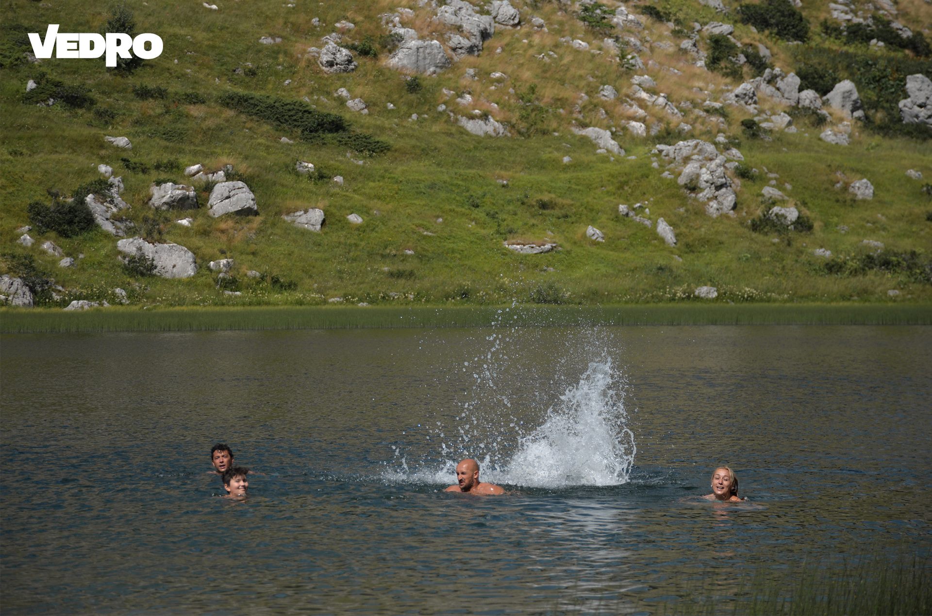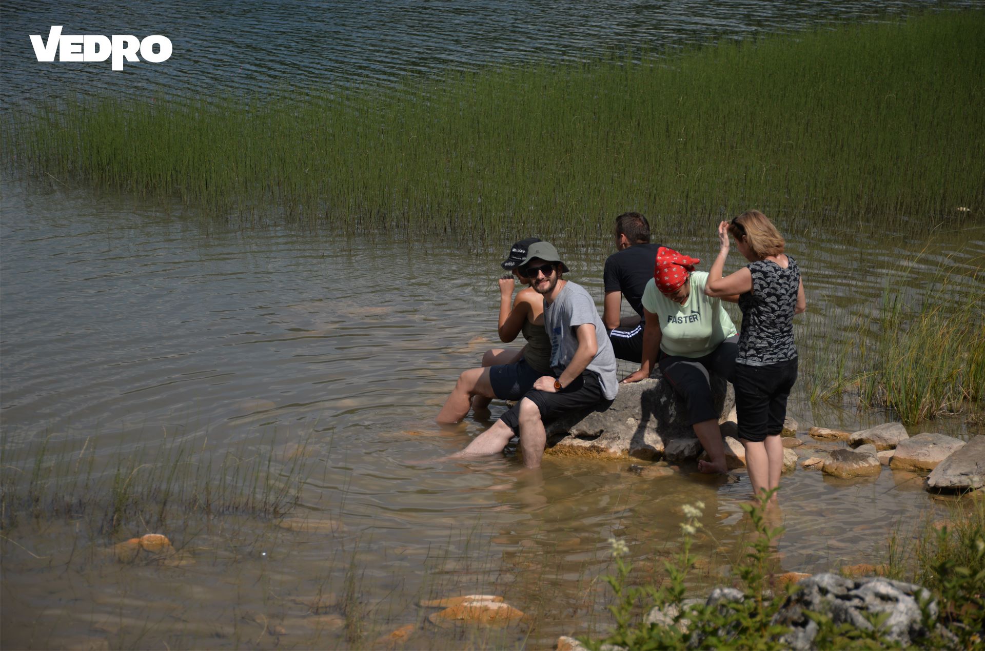 Na naše krajnje odredište, Veliko jezero, stigli smo u 14.30 h. Jezero je na nadmorskoj visini od 1.550 metara. Dužina jezera je oko 300 metara, širina oko 150 metara, a dubina oko 6 metara. U nijansama zelene boje sa pogledom na Veliko jezero te toploj dobrodošlici domaćina „kuće spasa“ na samoj obali Velikog jezera, uživali smo cijelih sat i 45 minuta. Veliko jezero simbol netaknute prirode i njene ljepote, njegova maslinasto zelena boje te lagano talasasto kretanje površine vode uz blagi povjetarac namamili su učesnike da se prepuste netaknutoj prirodi i toploj vodi, usljed čega je slijedilo kupanje.