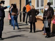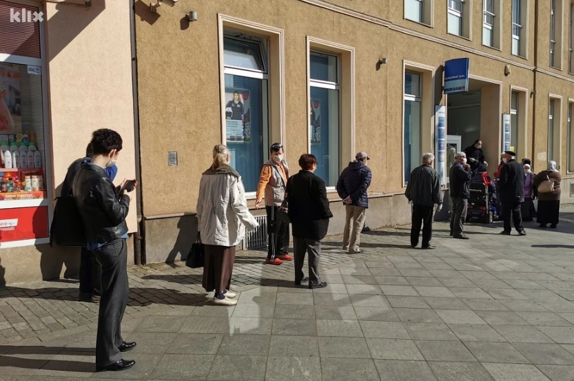 FOTO: U Zenici gužve ispred banaka, većina penzionera nosi maske, ali bez distance