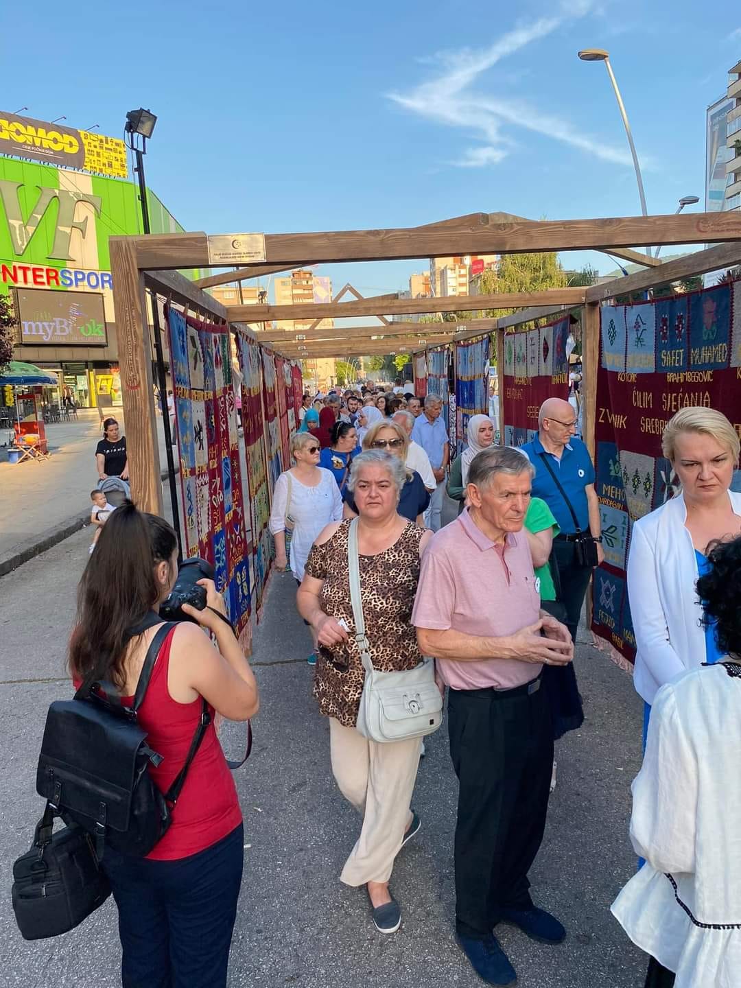 alerija “Preporod“ Zenica, u saradnji s Memorijalnim centrom Srebenica-Potočari, povodom obilježavanja 28. godišnjice genocida u Srebrenici, postavila je na Trgu Alije Izetbegovića u Zenici izložbu “Ćilimi sjećanja za žrtve genocida“.