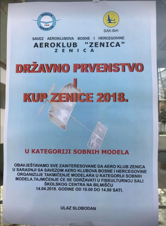 FOTO: U Zenici održano državno prvenstvo u aviomodelarstvu za 2018. godinu – Proteklog vikenda u Zenici se pod pokroviteljstvom Zrakoplovnog Saveza Bosne i Hercegovine , a uz tehničku organizaciju Aerokluba “Zenica”, održalo državno prvenstvo u dvoranskom aviomodelarstvu u klasi D-350 u juniorskoj i seniorskoj konkurenciji .