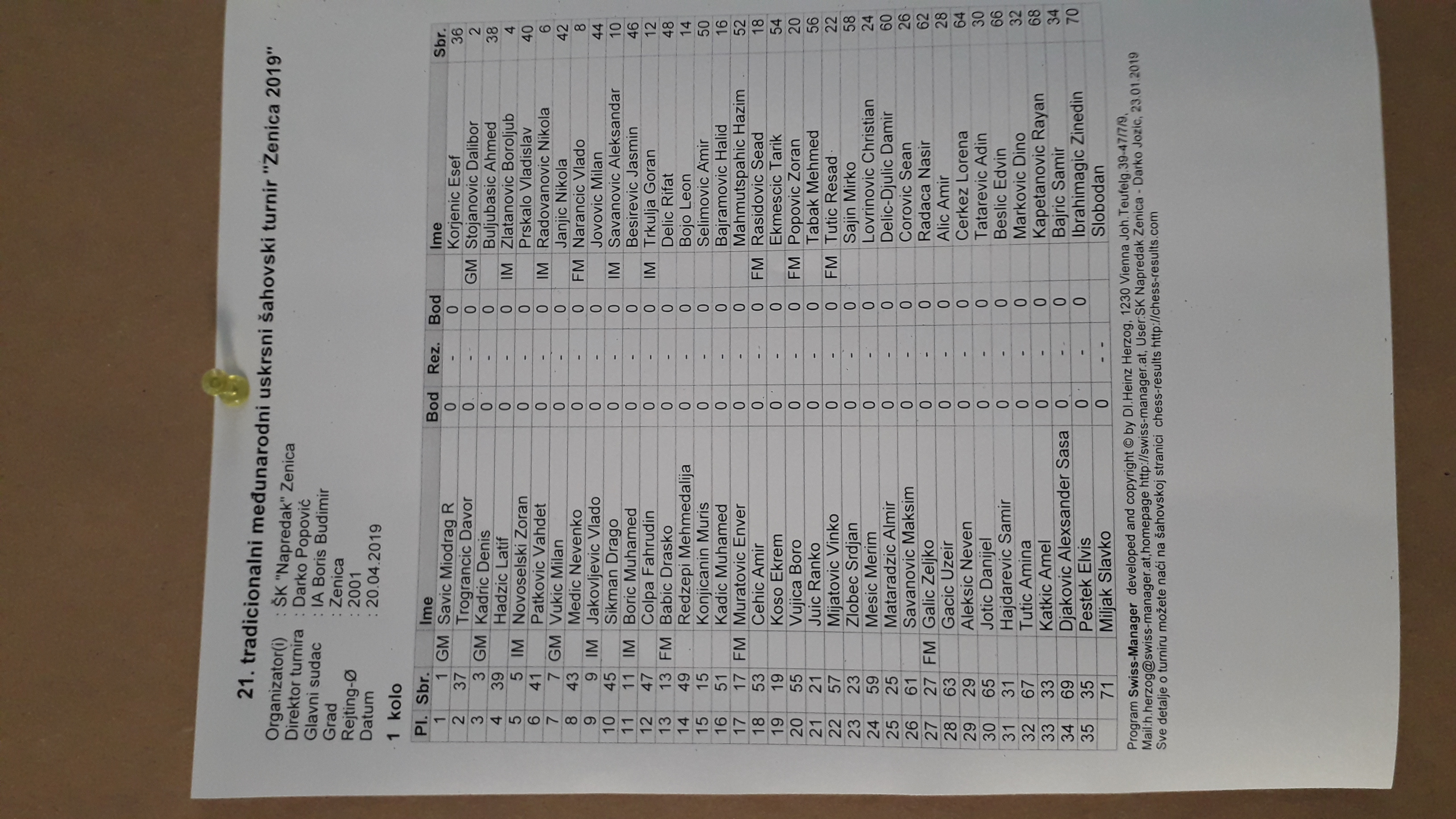 FOTO: U Zenici otvoren 21. Uskršnji šahovski turnir “Zenica 2019” – Danas, 20.04.2019.godine u Zenici je otvoren 21. tradicionalni Međunarodni uskršnji šahovski turnir „Zenica 2019“. Učestvuje 71 šahista i šahistkinja, među kojima su i 4 velemajstora (GM), 7 internacionalnih majstora (IM), te 7 FIDE majstora (FM), što govori da je turnir veoma jakog rejtinga.