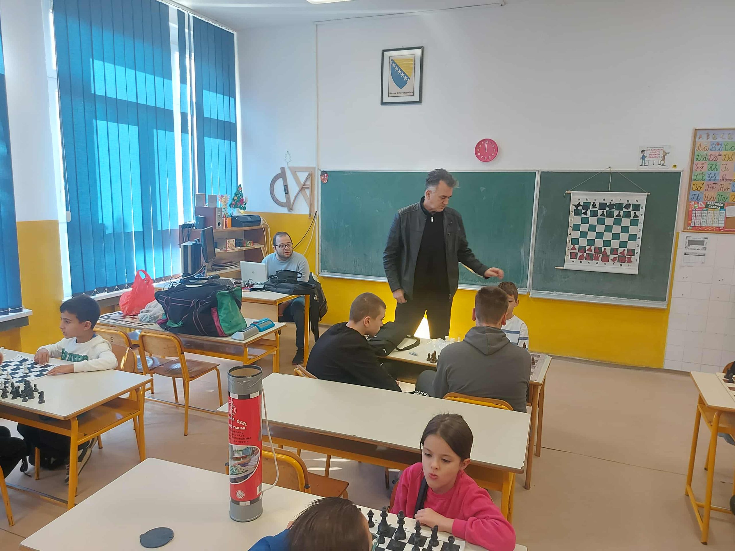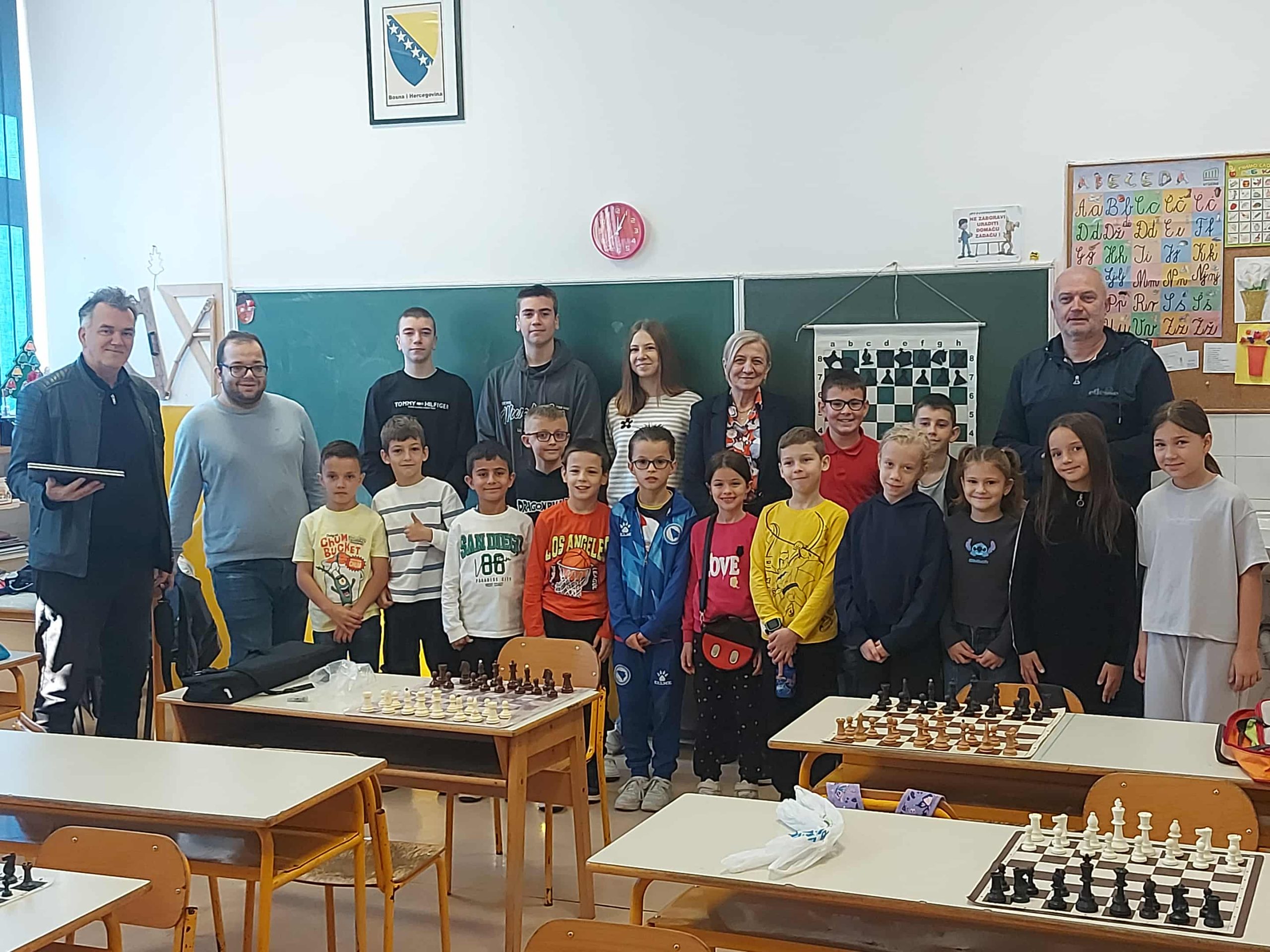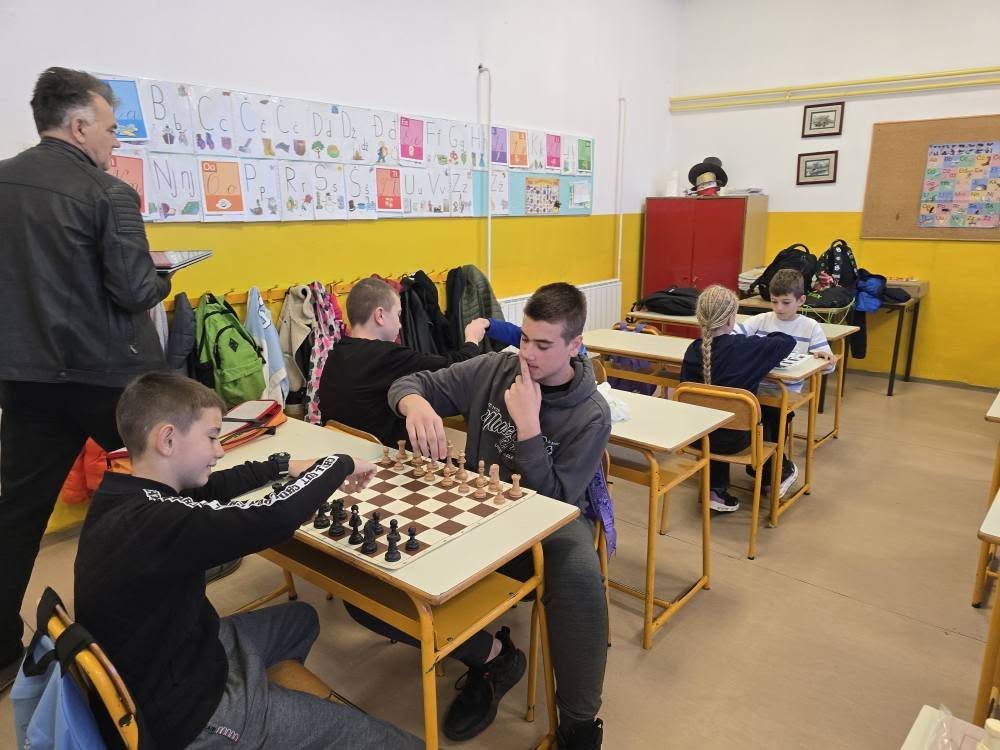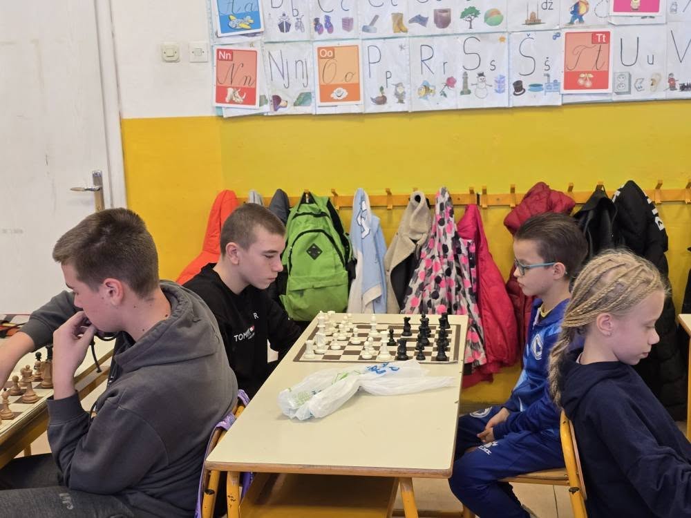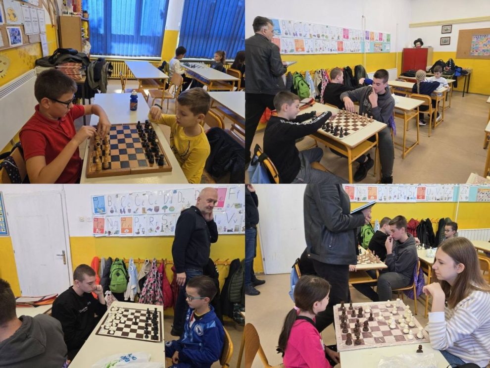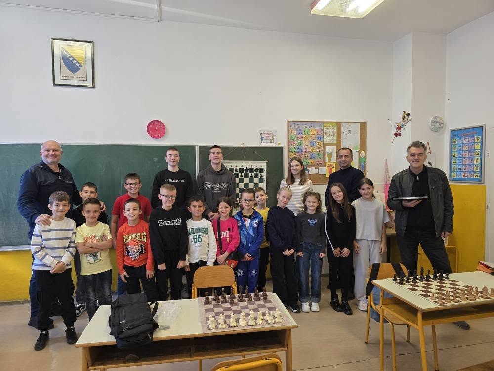 Zahvaljujemo se direktorici škole Enisi Šehić, te posebno nastavniku razredne nastave Ervinu Gunjeviću, koji nas je i ove godine dočekao domaćinski, s već pripremljenim šahovskim garniturama i osmijehom na licu.