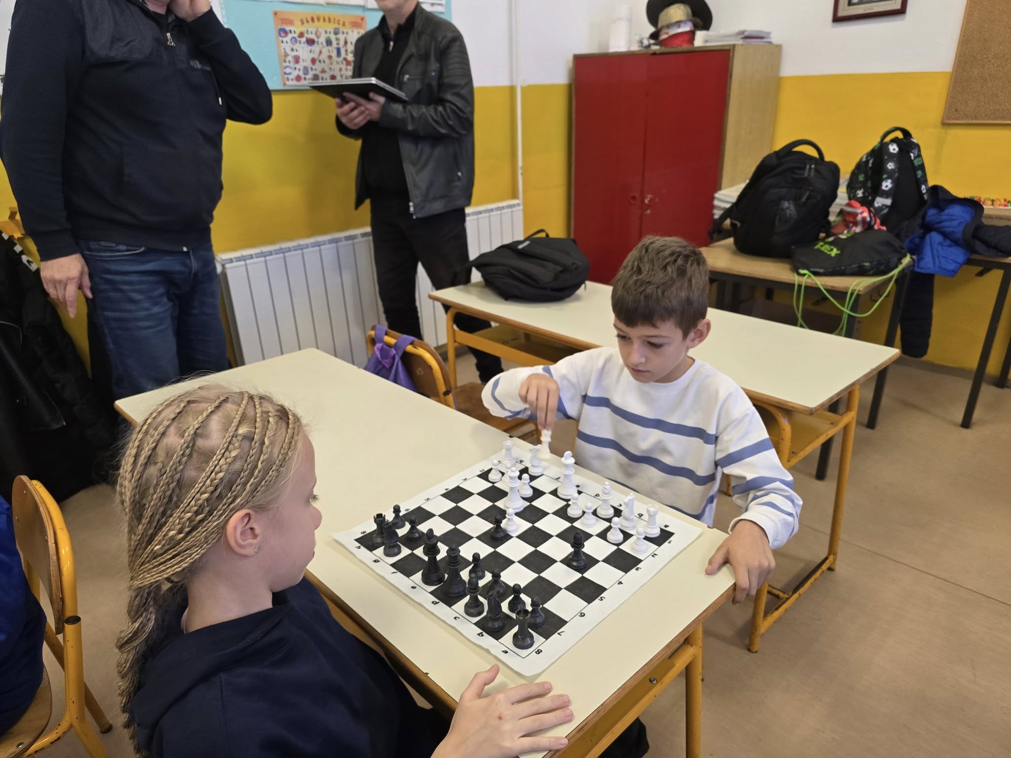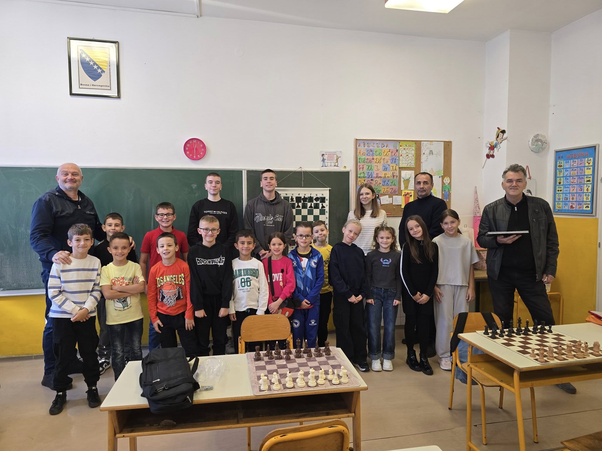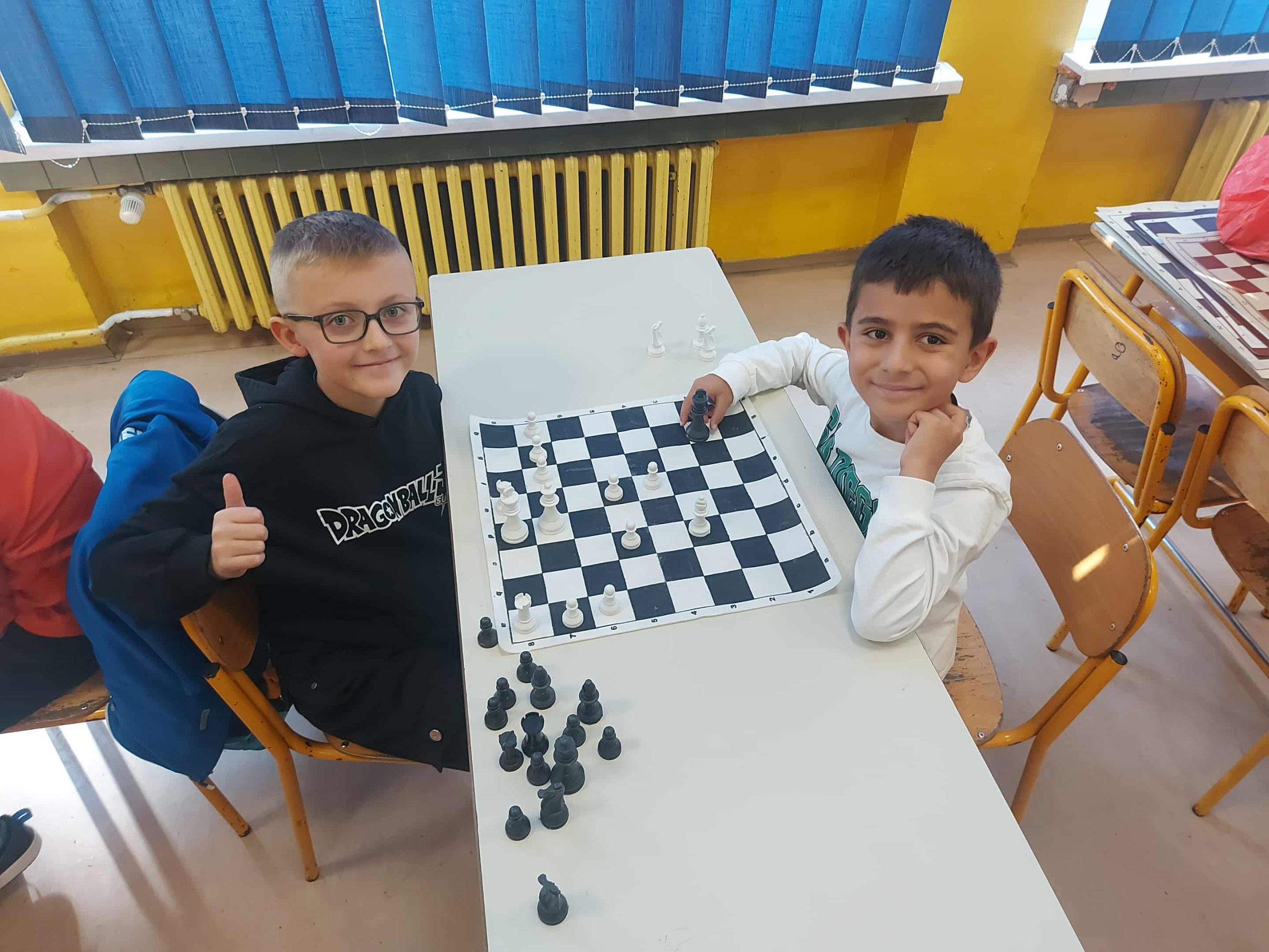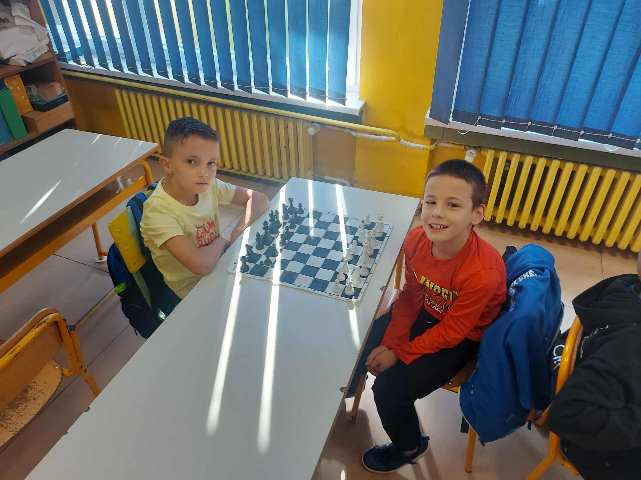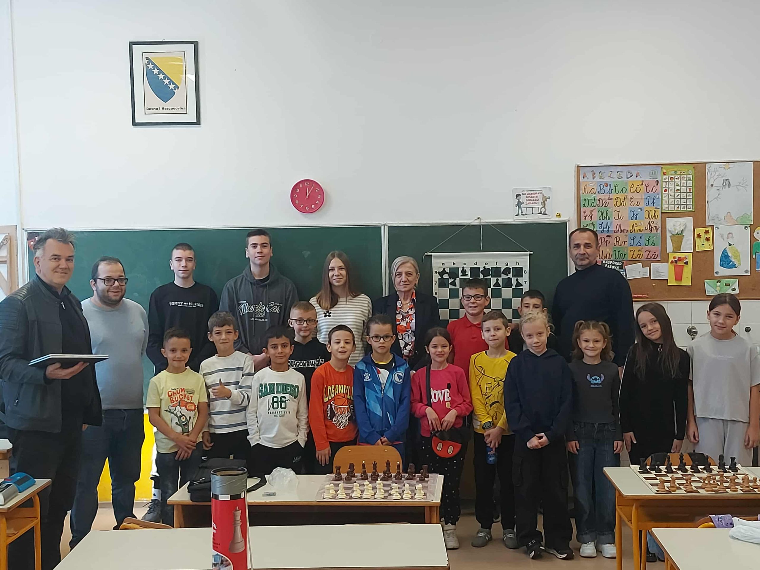 Zahvaljujemo se direktorici škole Enisi Šehić, te posebno nastavniku razredne nastave Ervinu Gunjeviću, koji nas je i ove godine dočekao domaćinski, s već pripremljenim šahovskim garniturama i osmijehom na licu.