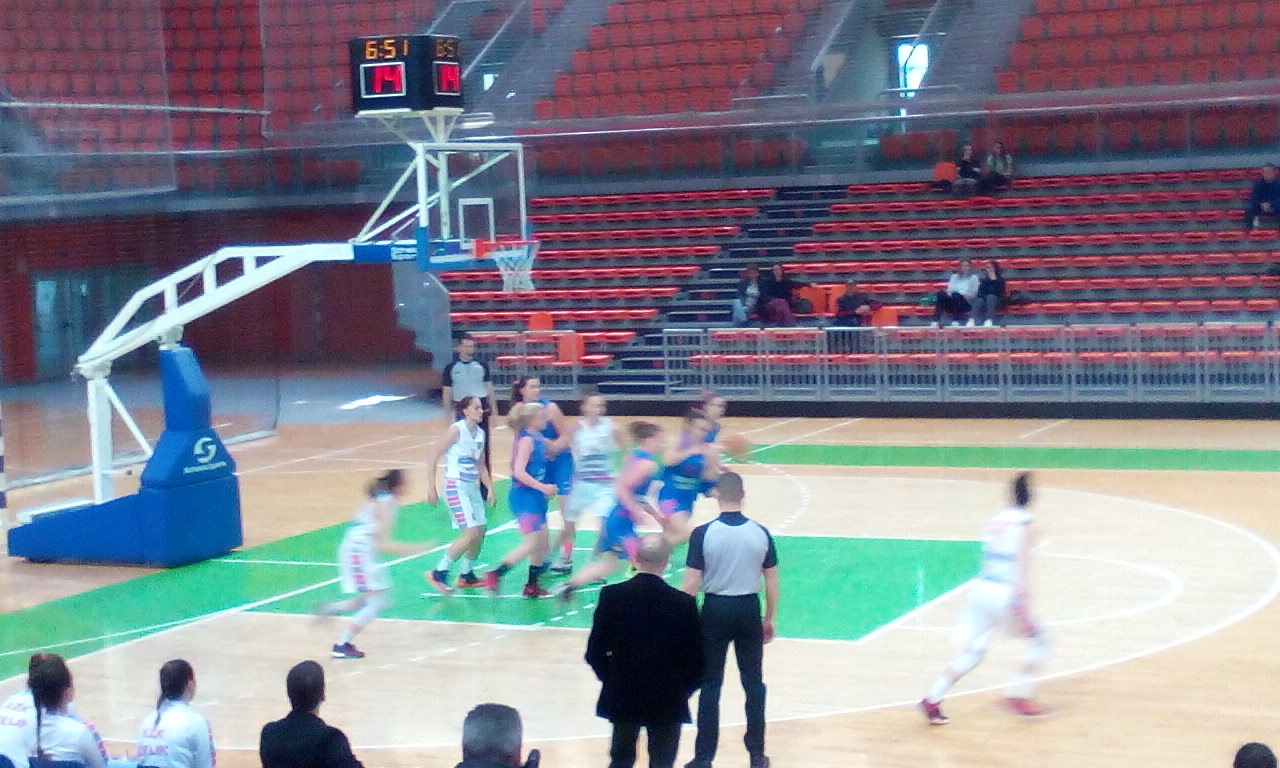 Do sredine prve dionice prilično ujednačena utakmica, a onda domaće pojačavaju i ubrzo je 23:10. Na kraju prve dionice rezultat je 25:16. U 14.minuti gošće su smanjile na 29:23, a nakon toga, do poluvremena, rezultat je 50:30 za domaće. Drugu dionicu domaće su dobile sa 25:14.