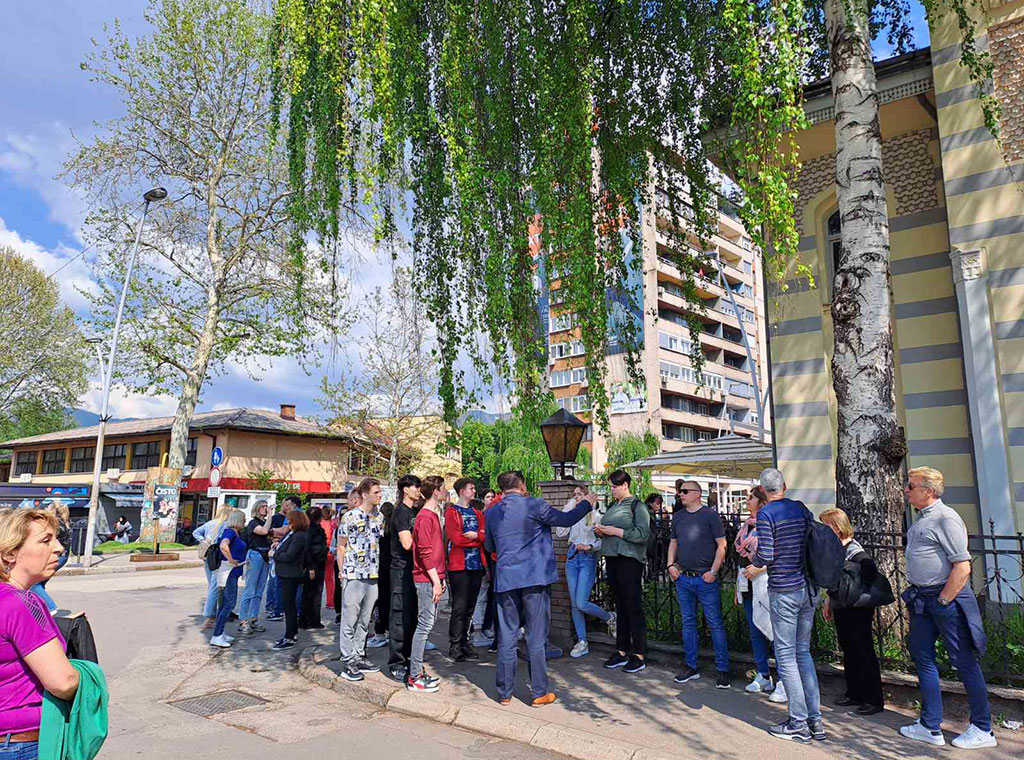 Potom je profesor Dragan Gavran proveo goste u obilazak znamenitosti grada Zenice. Obišli su stadion Bilino polje, park Kulina bana, crkvu Sv. Ilije, pravoslavnu crkvu, sinagogu i Čaršijsku džamiju. Obilazak su završili zajedničkom kafom i fotografiranjem.
