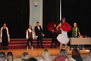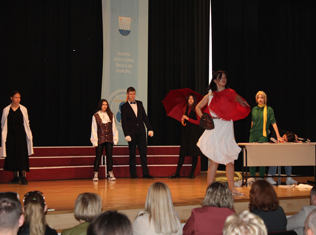 Nakon uvodnih pozdrava domaćina i podjele prigodnih darova, učenici KŠC-a izveli su prigodnu predstavu pod nazivom Brige, muke i pouke. Dramski komad koji je s učenicima pripremila s. Nada Abramović govori o izazovima kroz koje prolaze mladi tijekom školovanja te izbora fakulteta i zanimanja u budućnosti, s naglaskom na koje vrijednosti i osobe iz svijeta znanosti i umjetnosti se u tom traženju trebaju ugledati.