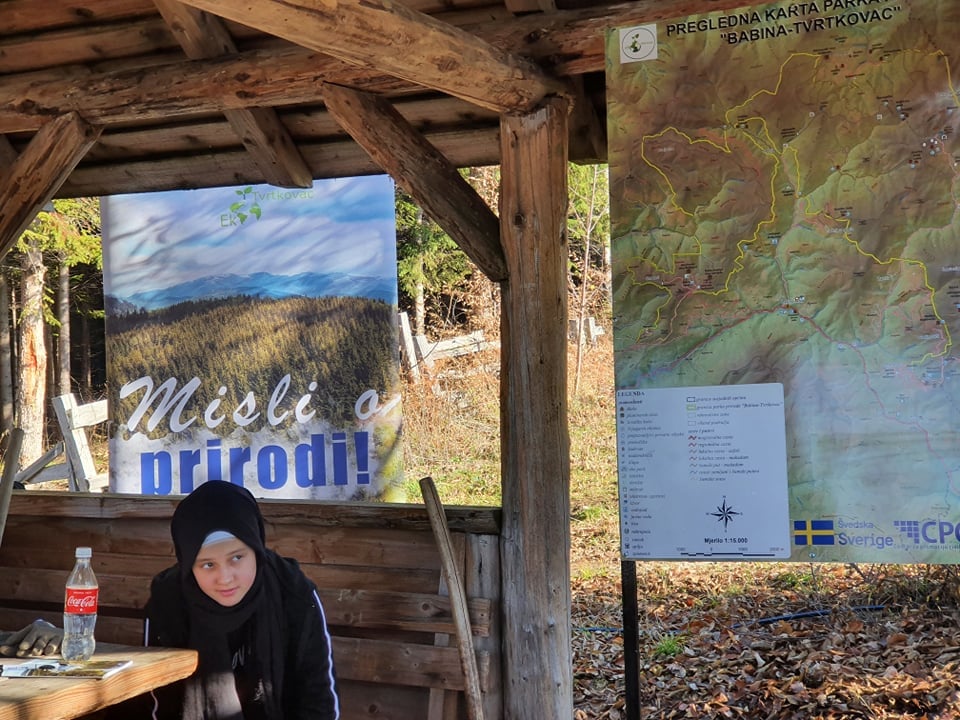 Učenicima je obećano da ćemo svakom učesniku dodijeliti po jednu sadnicu, na koje ćemo postaviti njihovo ime i oni će se brinuti o razvoju i rastu iste. I onda će moći doći kao odrasli ljudi sa svojom porodicom da isto obilaze. Na lokaciji smo educirali učenike o orjentaciji u prirodi kao i o budućem zaštićenom području Park prirode Babina – Tvrtkovac. Prisutni učenici su očistili i lokaciju Eko parka i prikupljeno smeće je odmah odnešeno sa lokacije. Kako bi ostali dosljedni sebi, postavili smo četiri nove klupe izrađene od paleta i postavili smo pet info tabli. Najbolje je posjetiti lokaciju i uvjeriti se u istinitost radova. Ova aktivnost je realizirana u sklopu projekta Misli o prirodi! koji implementira CPCD iz Sarajeva uz finansijsku podršku ambasade Švedske.