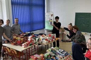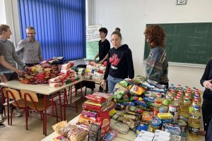FOTO: Učenici Prve gimnazije prikupili preko 300 kg prehrambenih proizvoda za Merhametovu kuhinju- Učenici Prve gimnazije u Zenici su od 6. do 11. novembra provodili akciju prikupljanja prehrambenih artikala i proizvoda realizirajući akciju “Učenici pomažu Merhametovu kuhinju”.