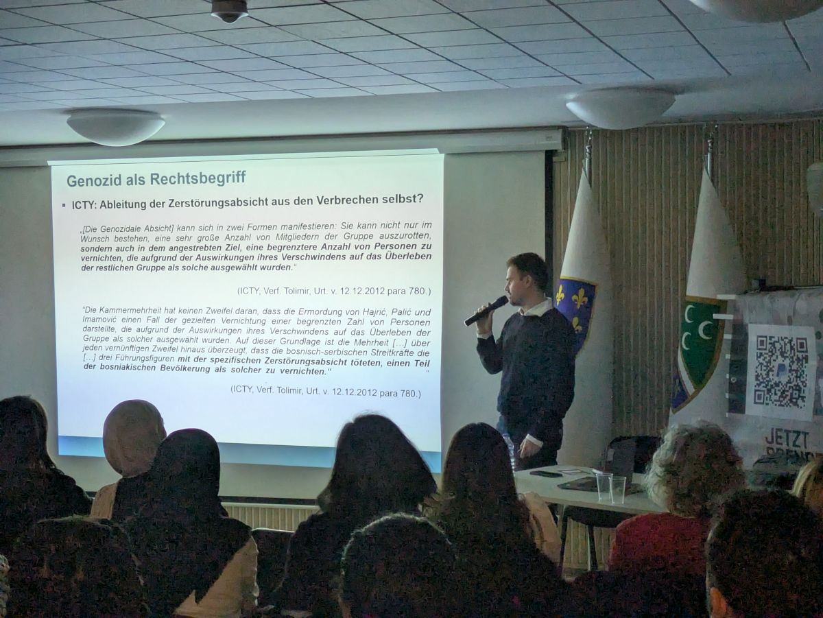 - Modul 2: Pravna perspektiva pojma genocida i njegova primjena na Bosnu (Predavač: Ass. Iur. Benjamin Rašidović, 13:30 – 14:30) – Detaljno je obrađen pravni status genocida i njegova primjena na zločine počinjene nad Bošnjacima.