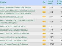 Stranica Webometrics koja se bavi rangiranjem svjetskih univerziteta izdala je januarsku listu najboljih svjetskih univerziteta. Univerziteti su rangirani prema tri kriterija: utjecaj, otvorenost i izvrsnost. Na listi je rangirano i 46 univerziteta i visokih škola iz Bosne i Hercegovine. Najbolje mjesto je zauzeo Univerzitet u Sarajevu, koji se nalazi na 1.593. mjestu najboljih univerziteta u svijetu.