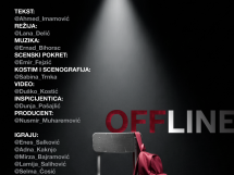 Predstava „Offline“ bavi se savremenim temama koje se tiču mladih generacija. U fokusu je generacija koja živi paralelne živote, jedan u stvarnom svijetu, a drugi u digitalnom prostoru društvenih mreža. Kroz scenski izraz, predstava istražuje kako se ta dva svijeta prepliću, reflektujući se kroz likove mladih i njihove „avatarske“ identitete koji ih neprestano prate.