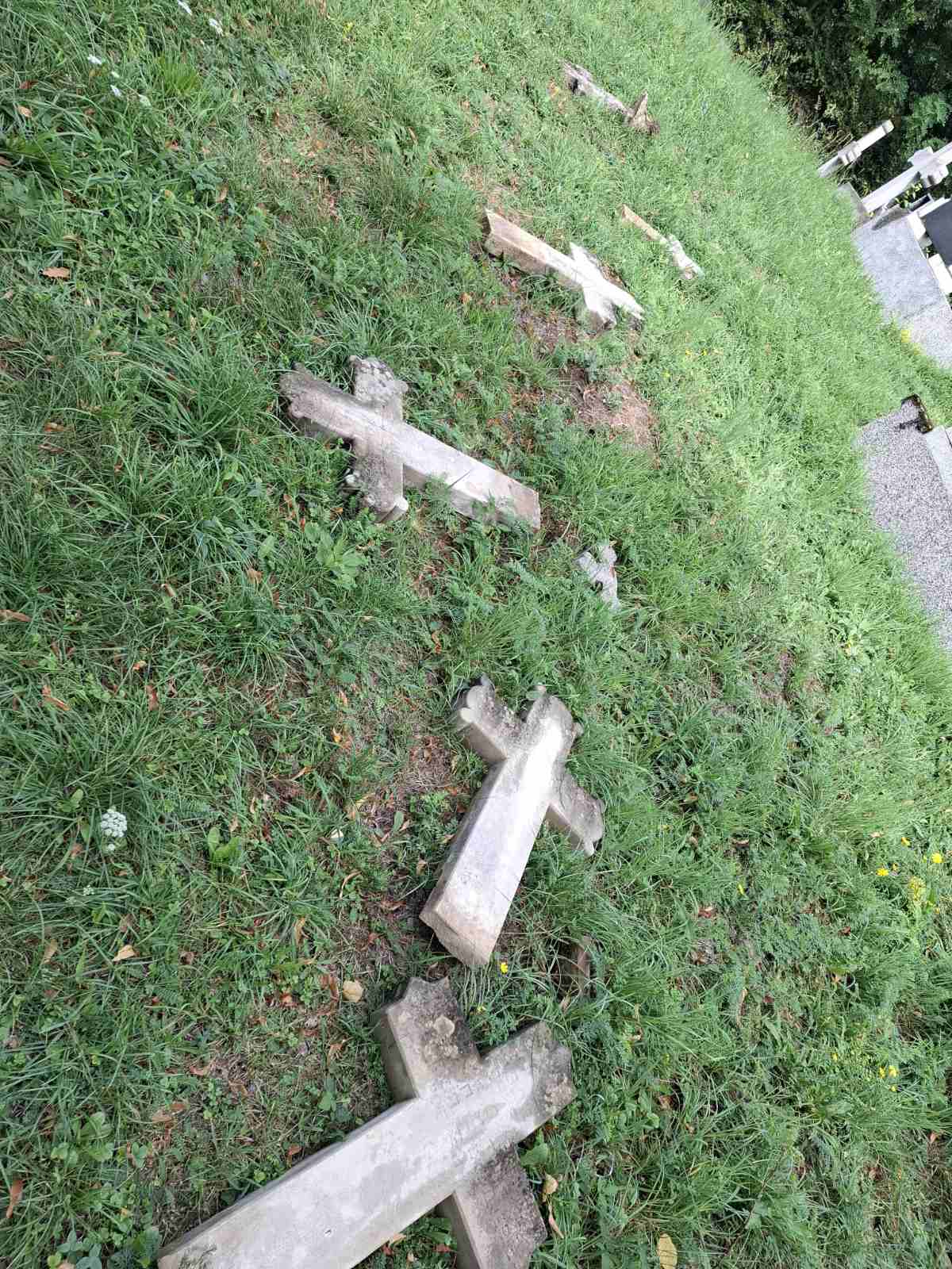 Nepoznati počinioci polomili su i oštetili gotovo 60 krstova i nadgrobnih spomenika, čime je nanesena velika šteta, ali i bol porodicama pokojnika.