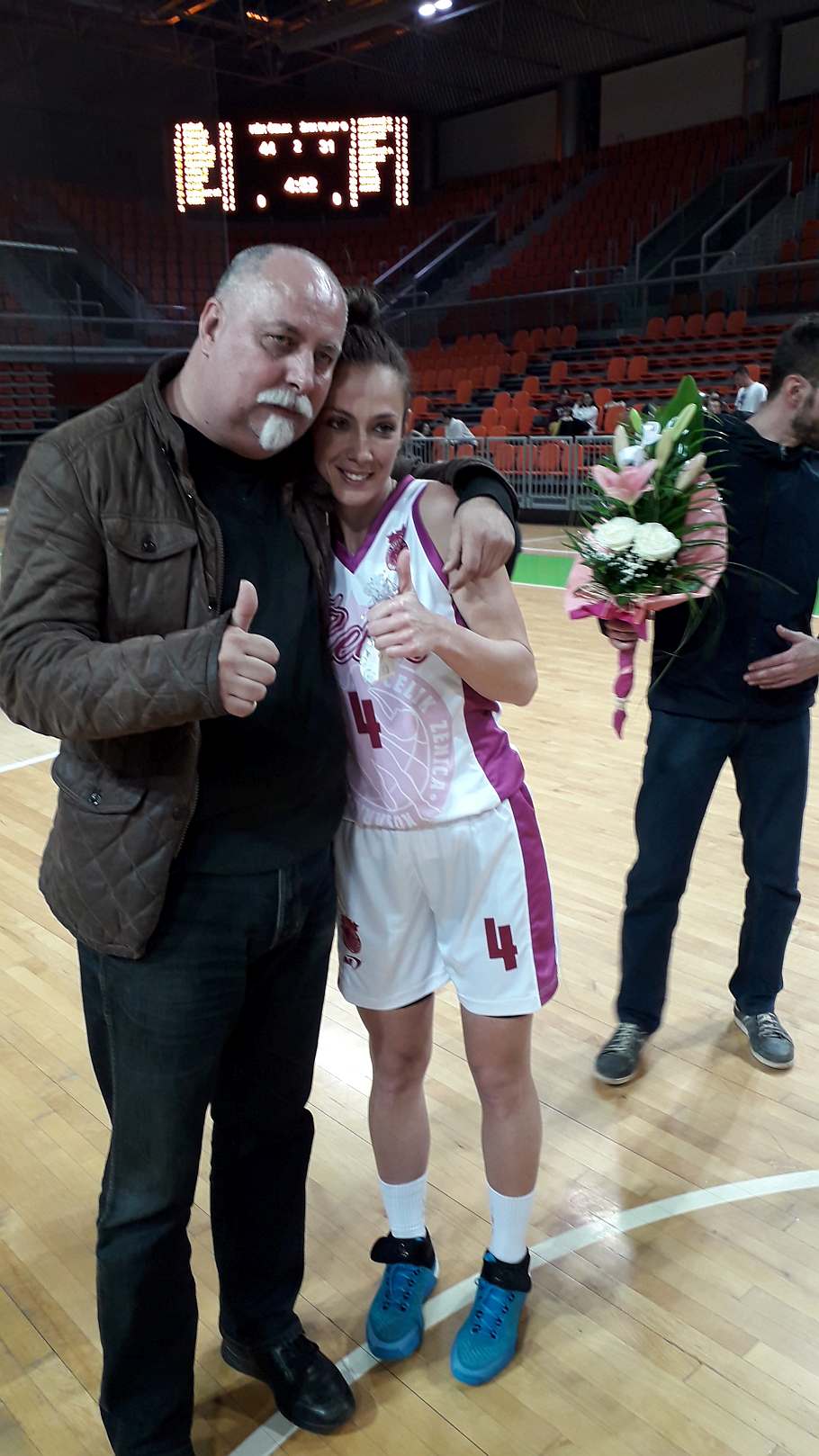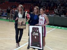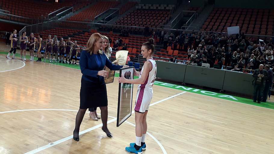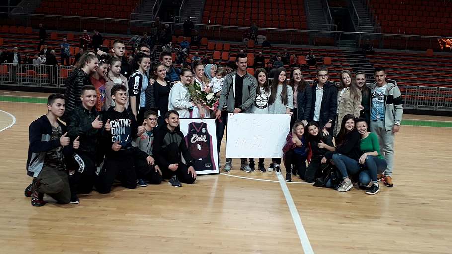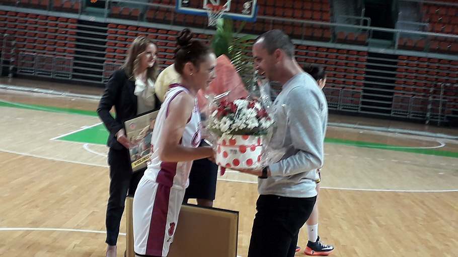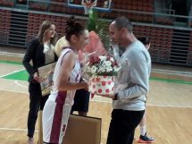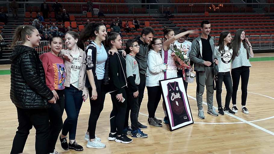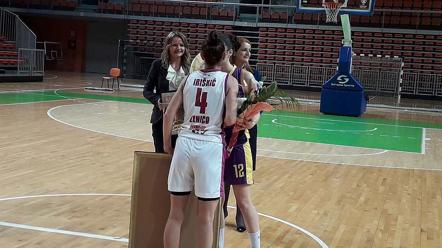 Na dvije minute prije kraja druge dionice u igru je ušla i “slavljenica” Aldijana Iriškić, koja je stigla upisati i pet poena, jednu trojku i dva poena, te podići cijelu dvoranu na noge i podsjetiti prisutne na trenutak kakva je igračica bila.