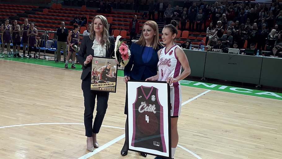 Na poluvremena utakmice uslijedila je mala svečanost. Aldijana Iriškić primila je poklone od predsjednice kluba Senaide Tabić, zatim gostujuće ekipe iz Sarajeva, ali i od strane OKK Čelik, te svojih mnogobrojnih prijatelja i bivših saigračica. Nastavljeno je fotografisanjem sa mnogim prijateljima, gledaocima…