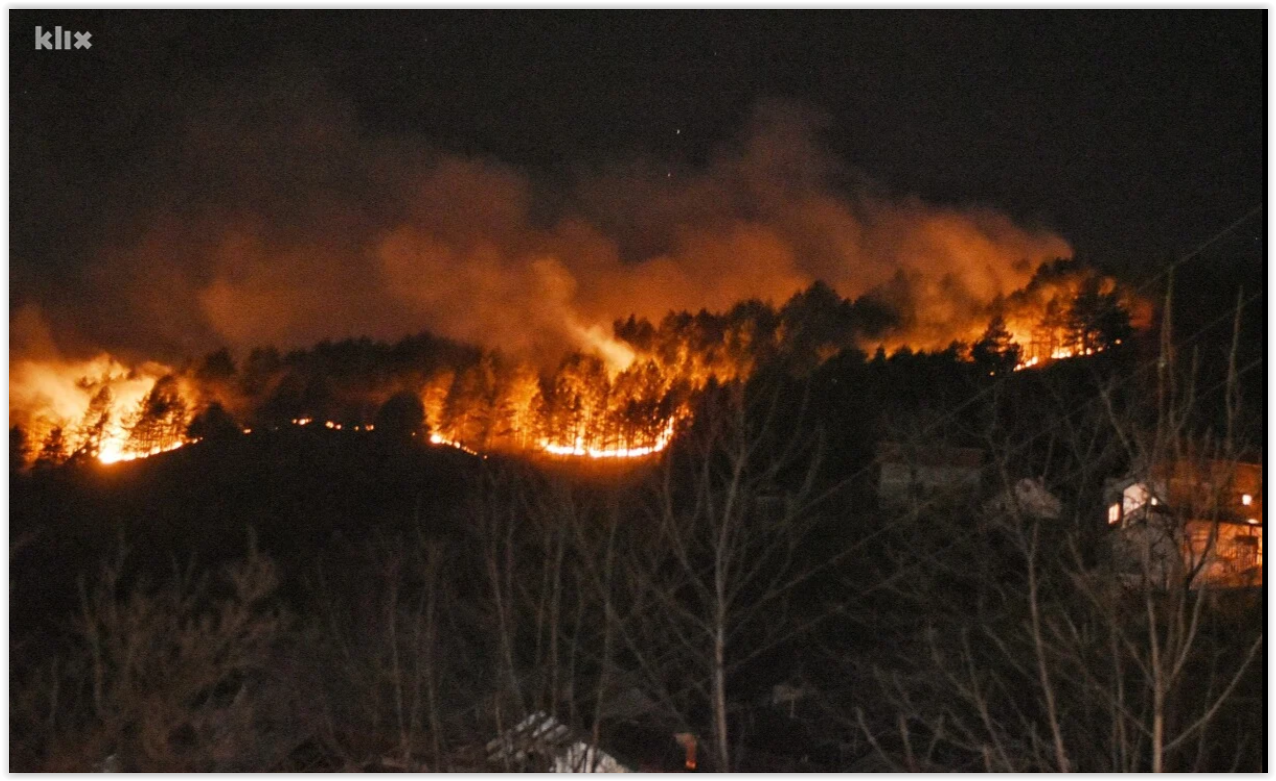 Prema informacijama mještana sve je počelo s niskim rastinjem s druge strane brda te se vatra proširili na borovu šumu zbog čega je veoma teško staviti pod kontrolu.