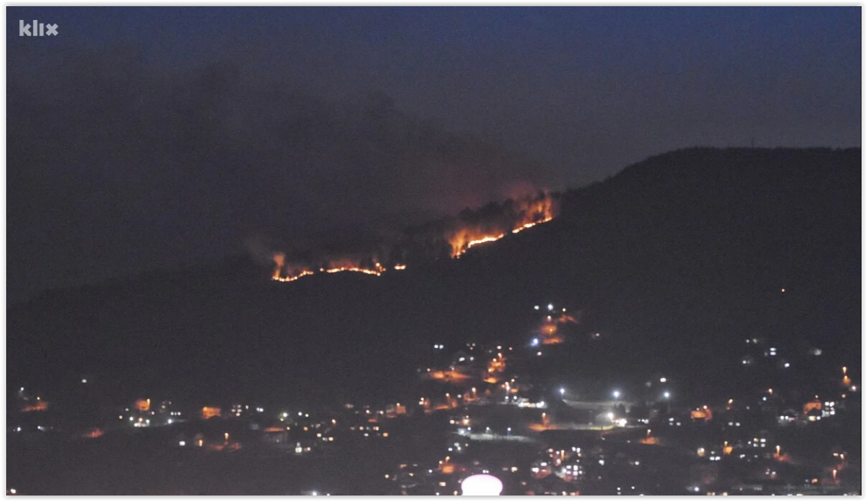 Nakon nekoliko sati gašenja vatrogasci nisu uspjeli staviti pod kontrolu vatru koja se veoma brzo proširila s jedne strane brda na drugu stranu zahvatajući i borovu šumu i već sada je samo nekoliko desetina metara od stambenih kuća.