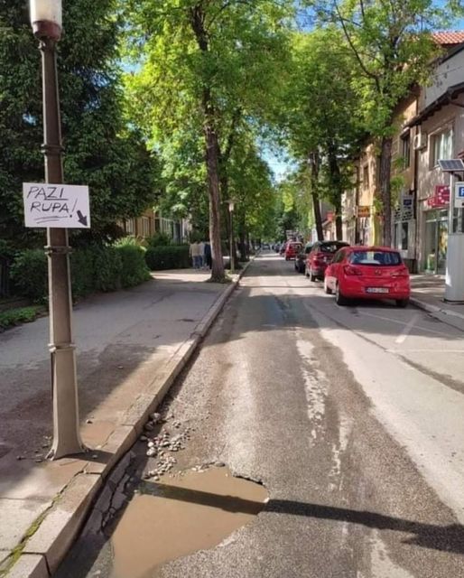 Odavno jedna rupa na cesti nije privukla pažnju kao ona iz Masarykove, jedne od centralnih gradskih ulica. Ponajviše zbog natpisa koji upozorava na nju, a liči na sarajevske ratne “Pazi, snajper”. Da se razumijemo, ova, čije snimke i fotografije nam šaljete ovih dana, ni po čemu nije drukčija od još nekoliko takvih u istoj ili stotina drugih u drugim gradskim ulicama.