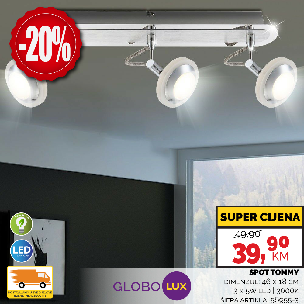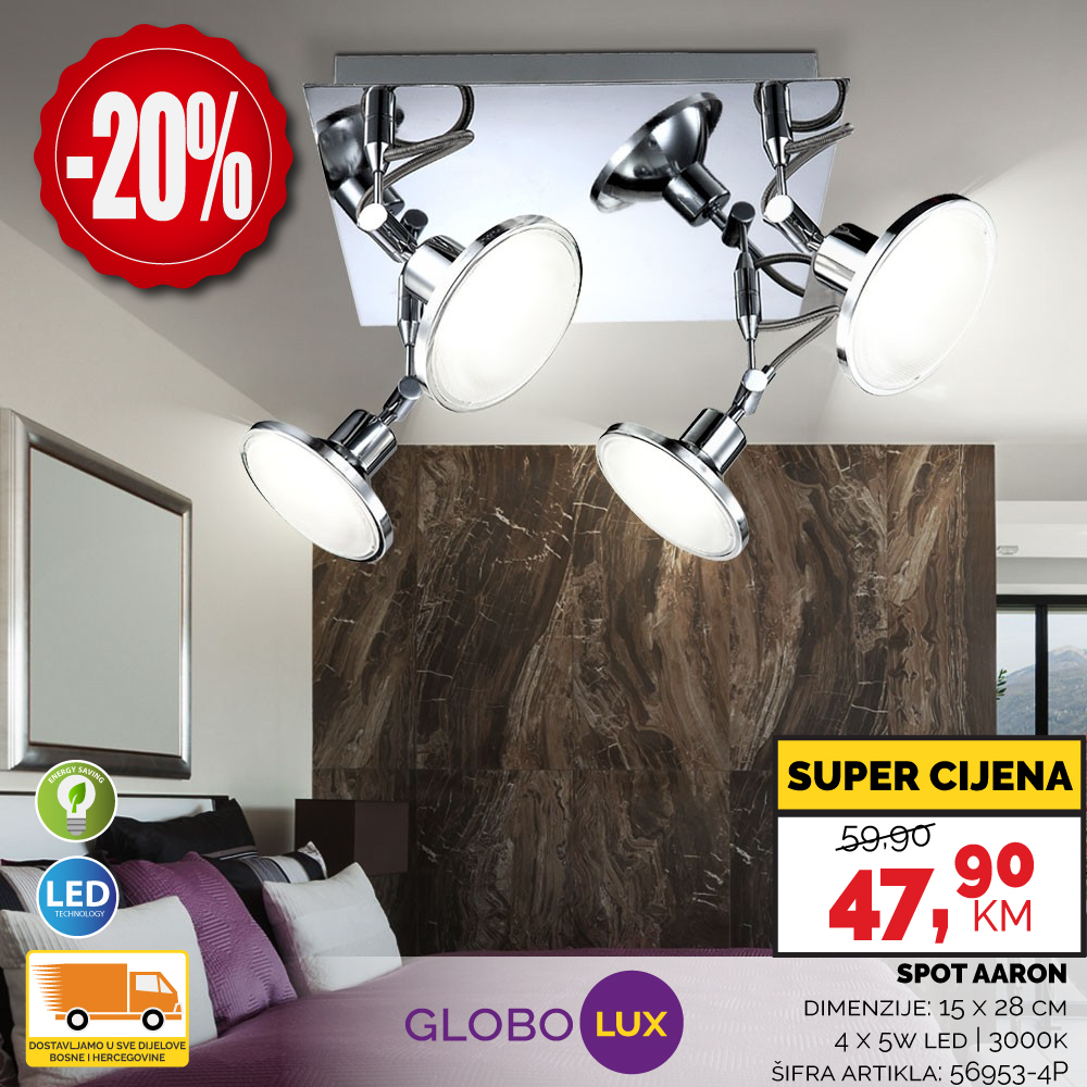Popust od čak -20%, na sve modele spotova, više je nego dovoljan razlog da i ovog vikenda Vaše odredište bude upravo Globo Lux!