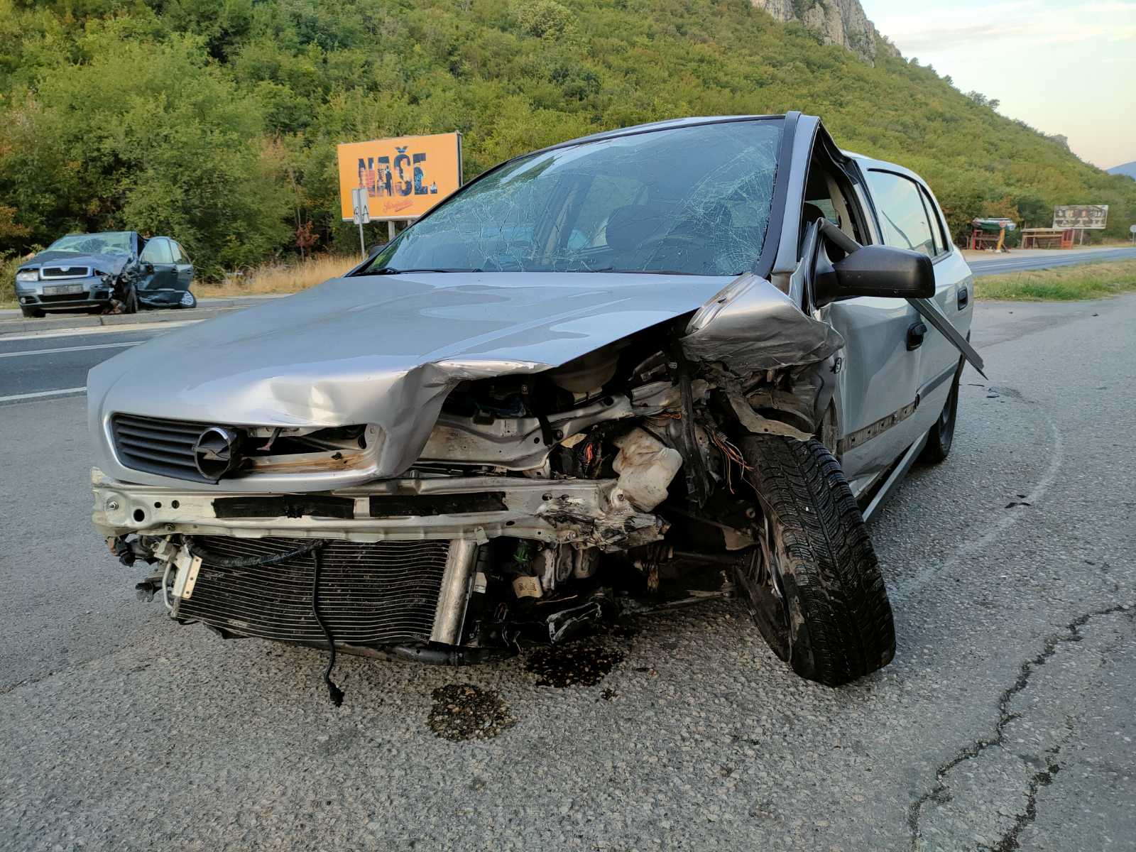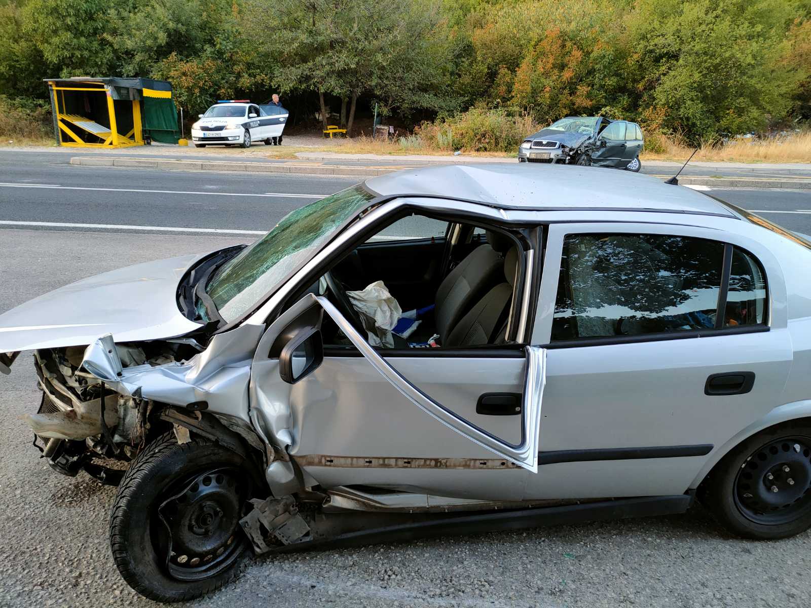U sudaru su sudjelovali vozilo Škoda i Opel, a od siline udara Škoda je odbačena na autobusko stajalište na desnoj strani ceste.