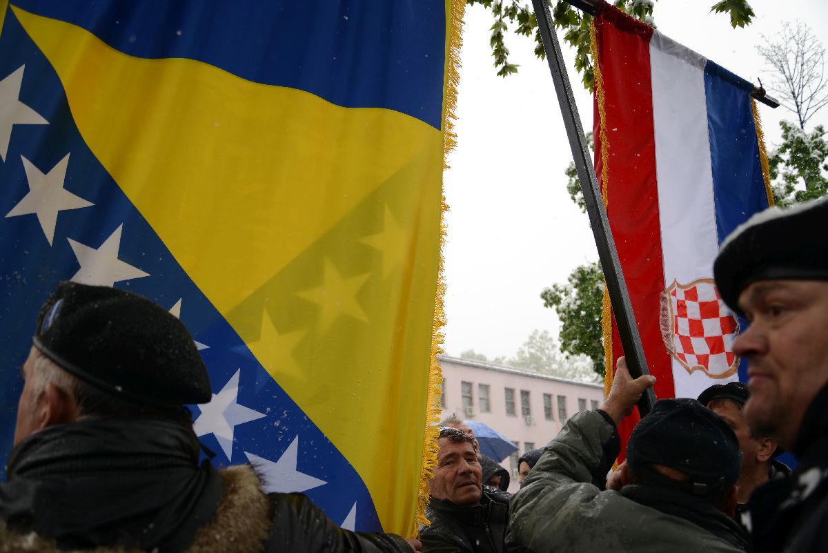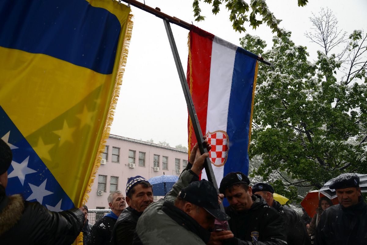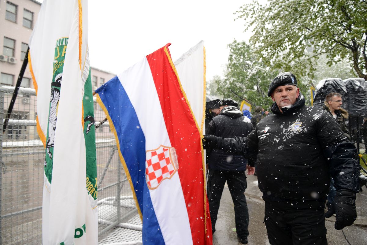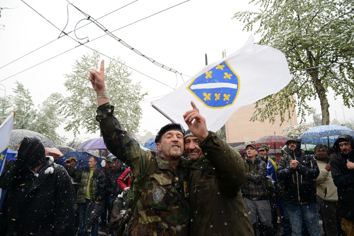 Ratni veterani, obučeni u uniforme i s ratnim zastavama pristizali su autobusima iz raznih dijelova BiH, uprkos hladnom vremenu i snijegu koji neprestano pada.