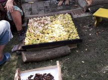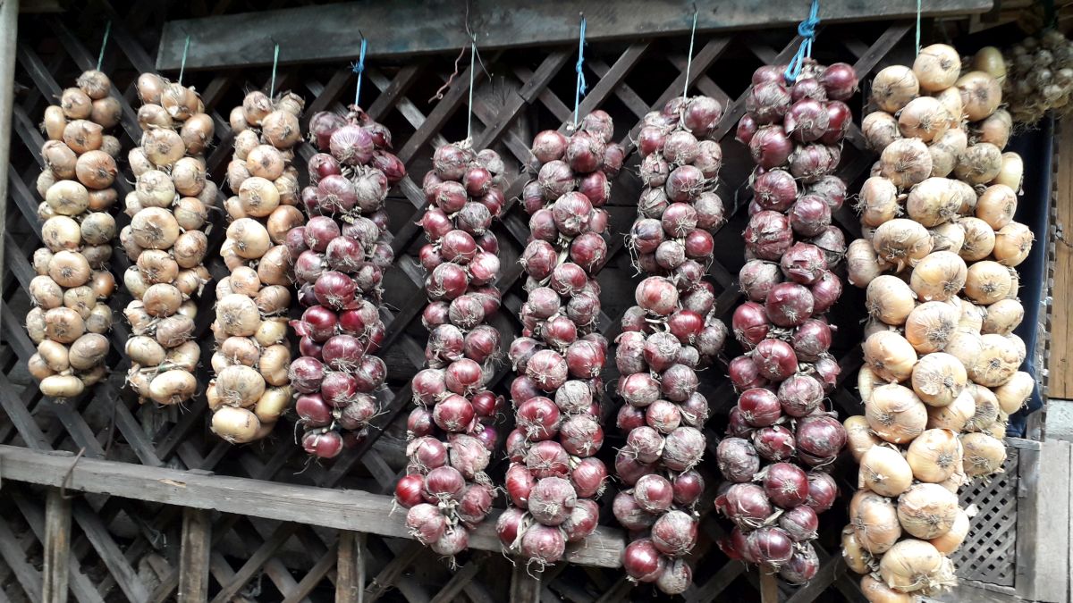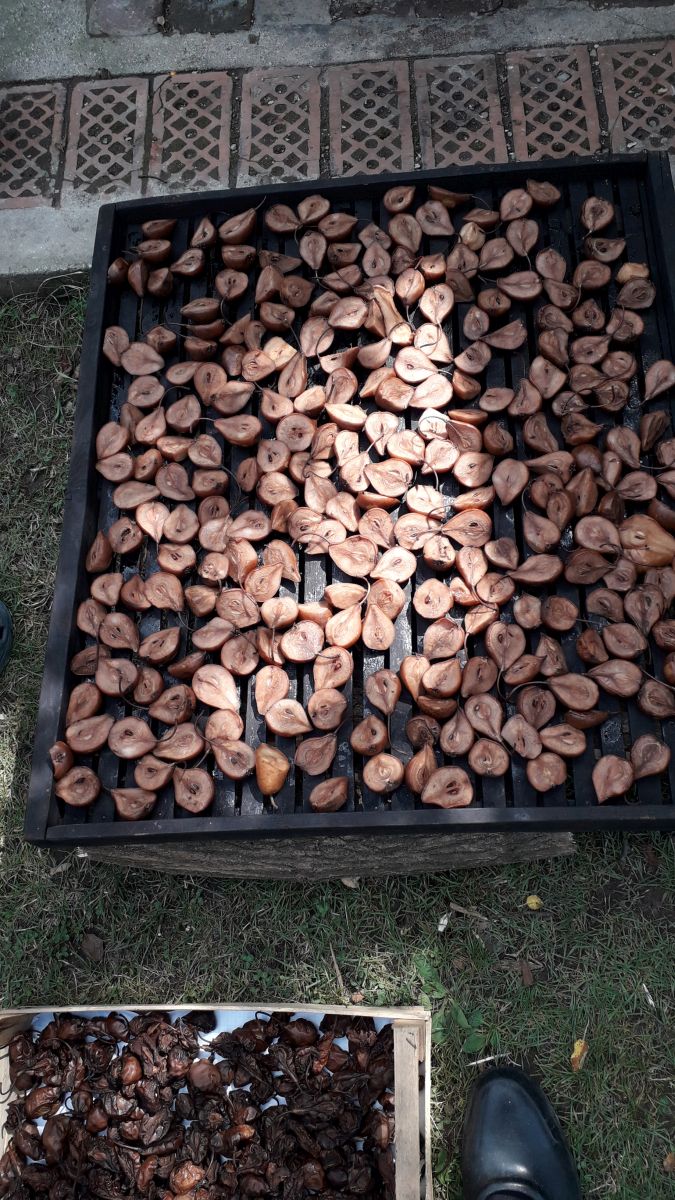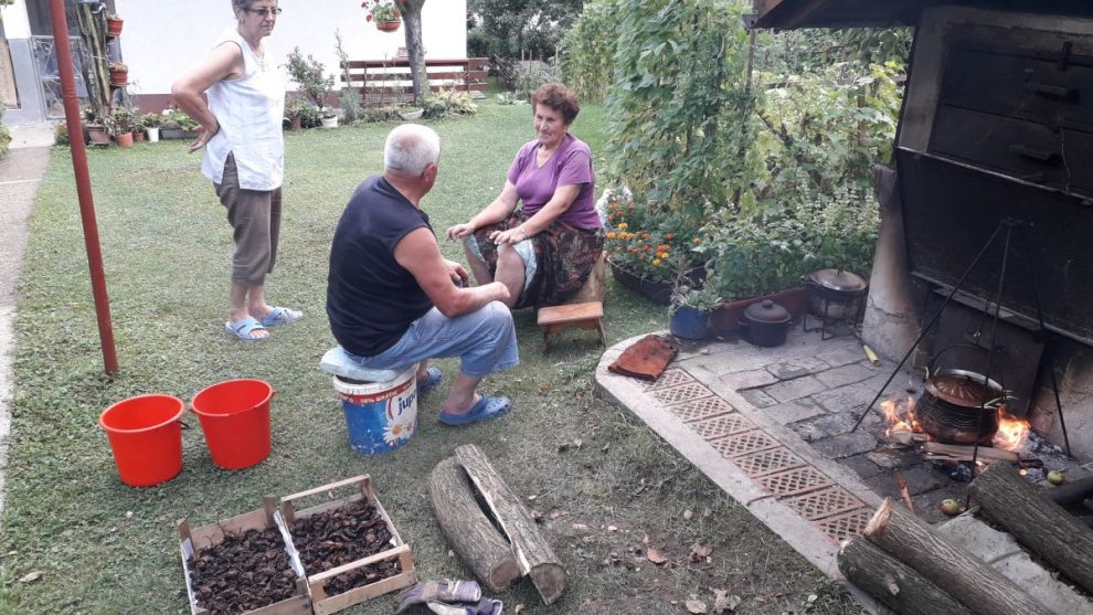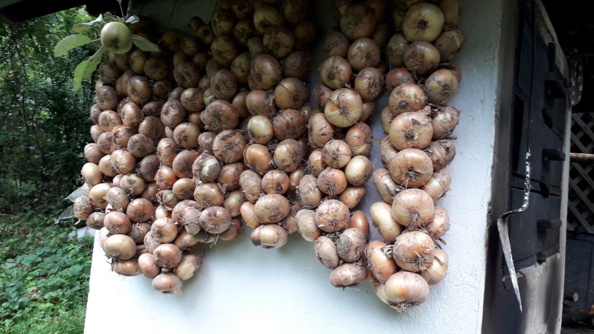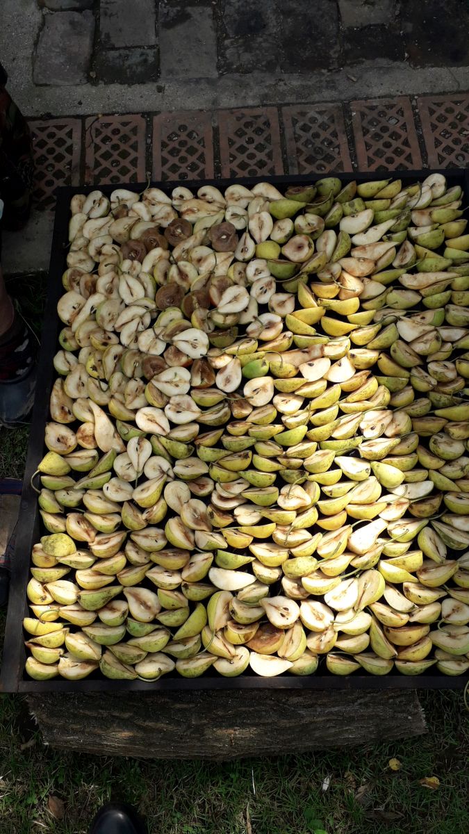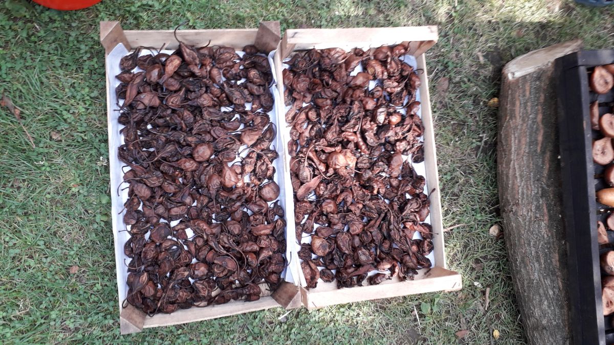 Prisustvovali smo i nadjevanju na vijence crvenog i ljubičastog luka, koji je rodio „kao u Banatu“. Na red je došlo i sušenje voća (kruške) u sušnici koju je Enes sam napravio na stari, tradicionalan način. Sušnica, a neko je zove pušnicom, ima tri lijese na tri nivoa na koje se slaže voće za sušenje i sve je napravljeno perfektno i sa stilom.