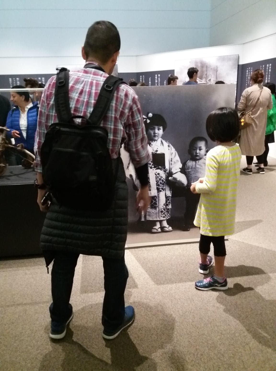 Hodam paralelno sa slikama iz ’’45. godine. I zastanem iza jedne djevojčice i njenog oca. On nju drži za ruku, blago nagnut ka njoj. Vratim se pola koraka unazad, da zapamtim tu sliku. I, tada primjetim. Njih dvoje se nalaze ispred slične fotografije. Na crno-bijeloj fotografiji ispred njih se nalazi identična scena. Djevojčica drži dječaka za ruku, obučeni u tradicionalnu japansku nošnju, kimono. Sestra i brat. U donjem desnom uglu piše da nisu preživjeli pad atomske bombe. Vratim se pogledom na djevojčicu. Pogleda u oca, pa se pogledom vrati na fotografiju. Otac joj nešto šapnu, pomilova po kosi i pođoše dalje. Još uvijek mislim da su to bile riječi nade…