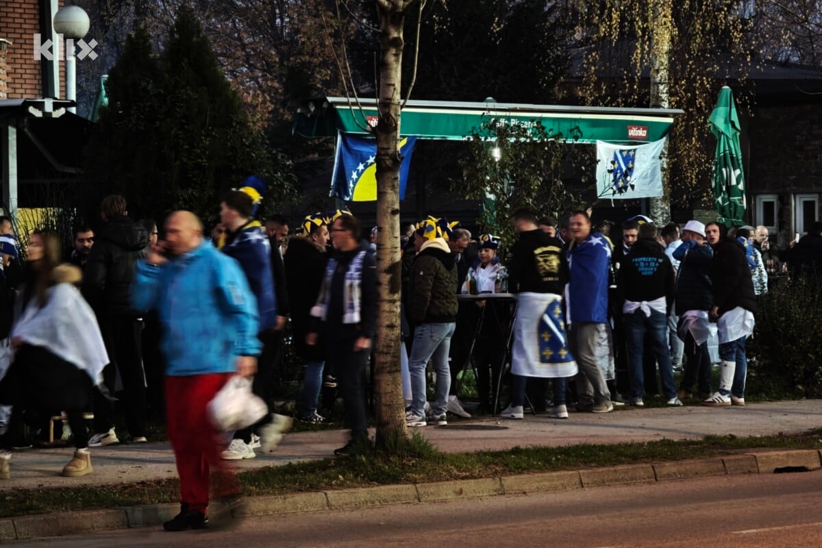 Iako do utakmice ima još nekoliko sati, Zenica je prepuna navijača BiH s rekvizitima koji su okupirali okolne kafiće.