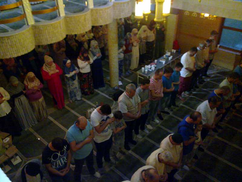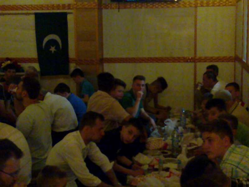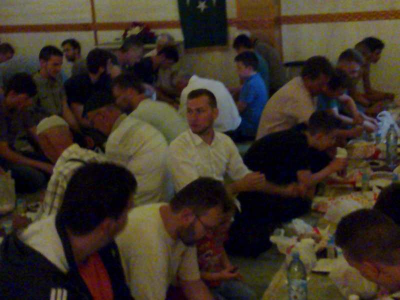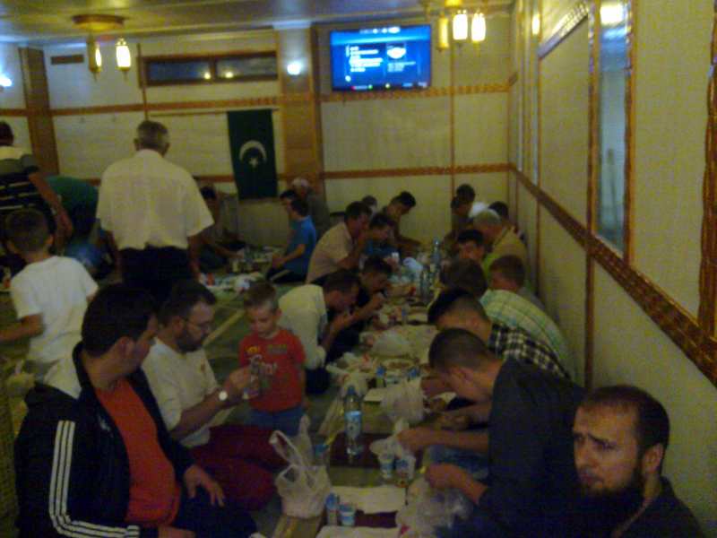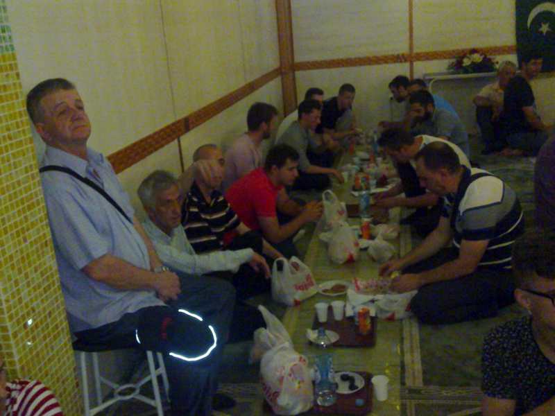 Nakon iftarenja hurmama i vodom, klanjao se akšam namaz. Slijedio je iftar za žene na makfilu džamije, a u podrumskim prostorijama za muškarce. Dovu nakon iftara proučio je imam džamije Hasan ef. Kozlić.