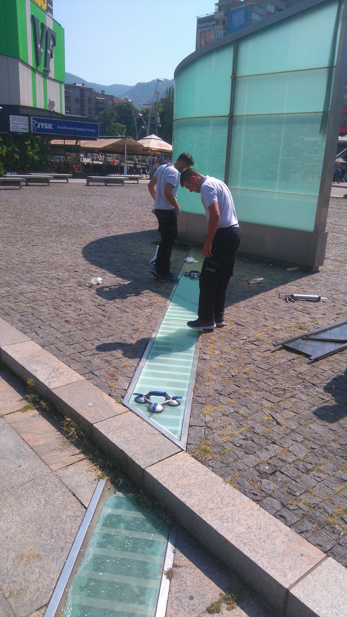 FOTO: Zamijenjeni oštećeni dijelovi “Kamenog spavača” – Vrijedni radnici komunalnog preduzeća ALBA i vitežanske firme Kristal uspješno su okončali zamjenu oštećenih dijelova na spomeniku Kameni spavač.
