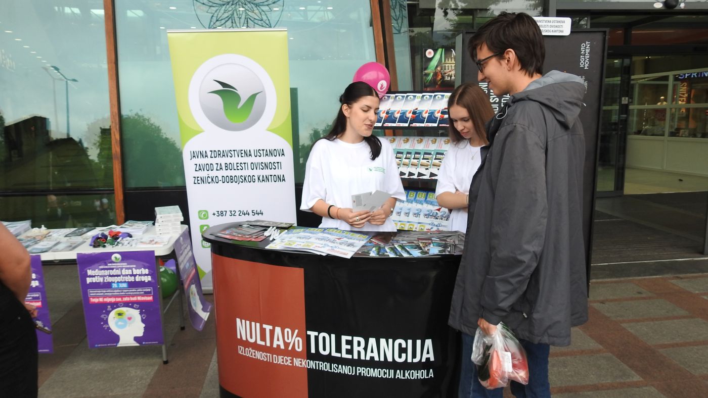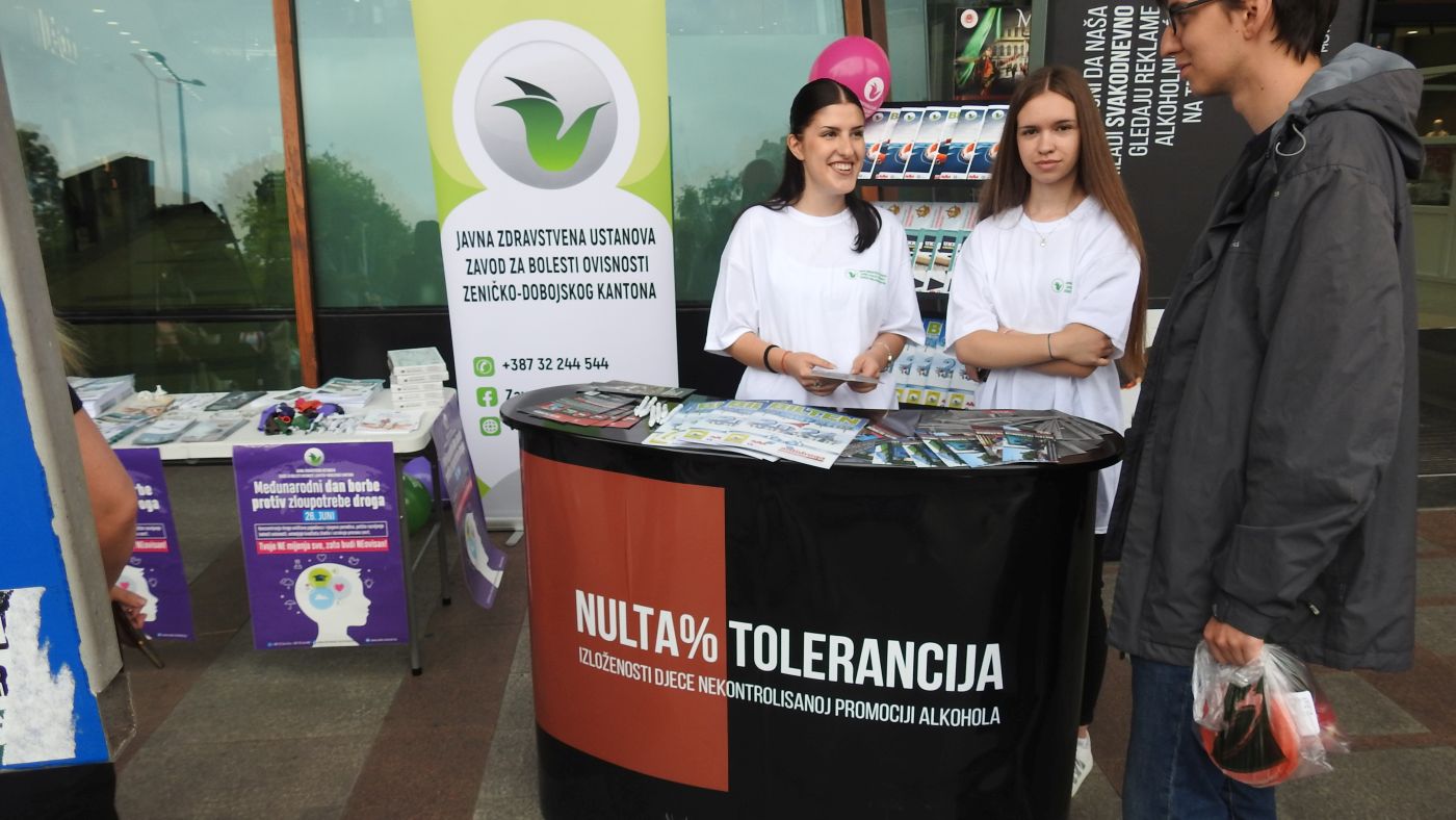 “Nizom aktivnosti u organizaciji Javne zdravstvene ustanove Zavod za bolesti ovisnosti Zeničko-dobojskog kantona obilježen je Međunarodni dan borbe protiv zloupotrebe droge u našem kantonu. Generalna skupština Ujedinjenih naroda još od 1987. godine na ovaj dan pokušava upozoriti globalnu svjetsku javnost na sverastući problem zloupotrebe (opojnih) droga i potrebu aktivnog uključivanja svih aktera, kako na globalnoj svjetskoj razini tako i na nacionalnoj razini, za djelovanje u postizanju zajedničkog cilja – međunarodno društvo slobodno od zloupotrebe droga. “Ništa bolja situacija nije ni kod nas. Raste broj ovisnika, a posebno je zabrinjavajuće što je među tim brojkama sve više mladih. Cilj je upozoriti što veći broj građana na problem raširenosti zloupotrebe droga i zajedničkim snagama se suprotstaviti ovom ozbiljnom problemu današnjice, istakli su organizatori ovog događaja. Danas ovdje imamo dosta volontera, a riječ je o učenicima Srednje Mješovite škole “Mladost” Zenica kao i volontere iz Travnika, tačnije iz Centra za edukaciju mladih što nam je izuzetno drago. Prevencija je jedan od vodećih faktora te borbe. Mi svake godine provodimo projekte edukacije mladih u školama od 13 do 18 godina, Vijeća učenika, sarađujemo sa nevladinim organizacijama, a ove godine planiramo u edukaciju uključiti i nastavno osoblje što se pokazalo jako bitno jer vidimo da trend raznih vrsta ovisnosti među mladima raste”, istakla je Meliha Brdarević Šikić, šefica Odjeljena za prevenciju i savjetovanje Zavoda za bolesti ovisnosti ZDK.