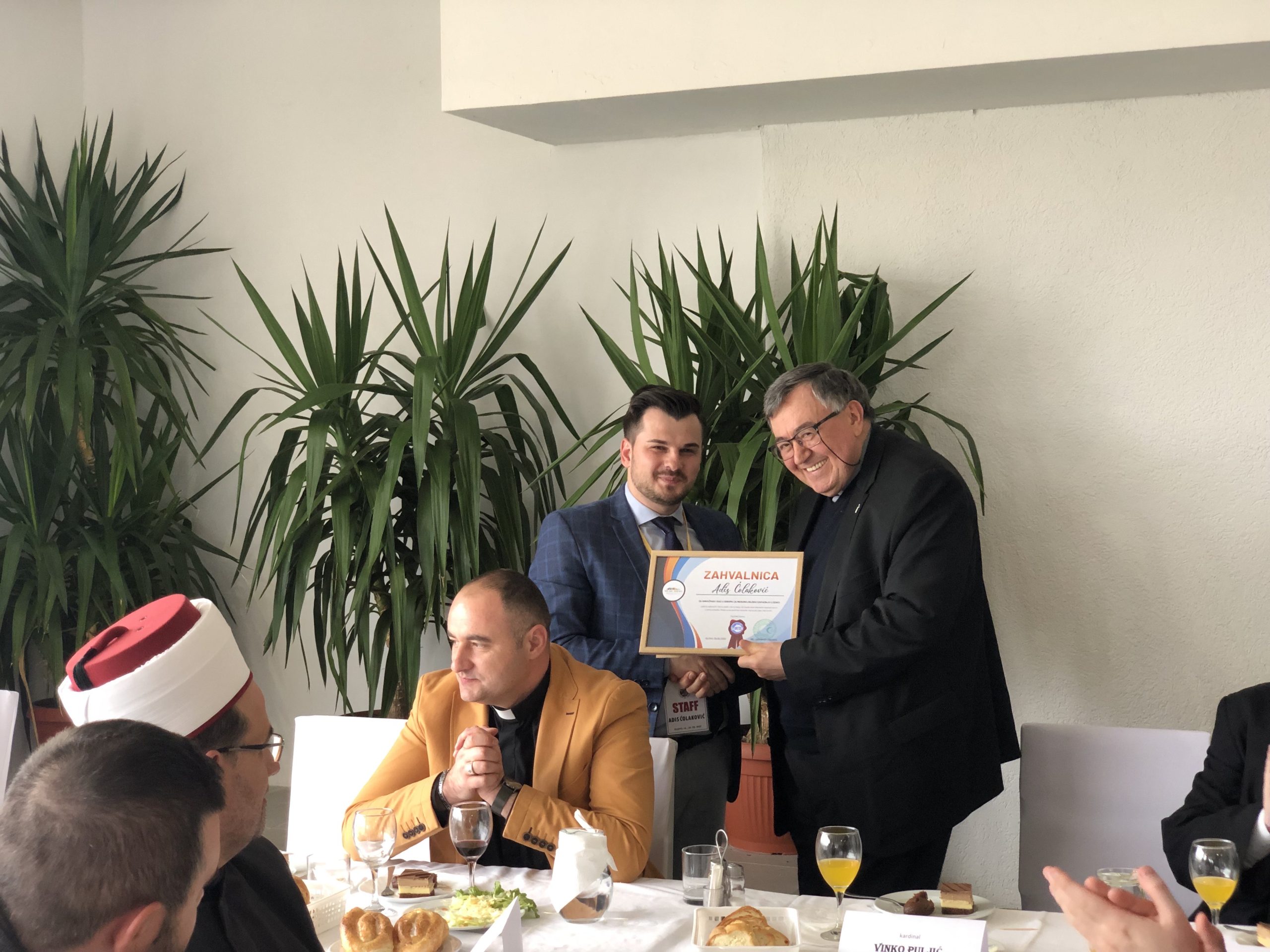 Predstavnici tradicionalnih vjerskih zajednica i crkava iz Zenice su Kardinalu poklonili umjetničku sliku Vranduka, kao uspomenu i zahvalnost za angažman na polju dijaloga i razumijevanja, a Kardinal je uručio zahvalnicu koordinatoru za mlade OMS-a Zenica, Adisu Čolakoviću za dosadašnji trud i zalaganje u radu s mladima.