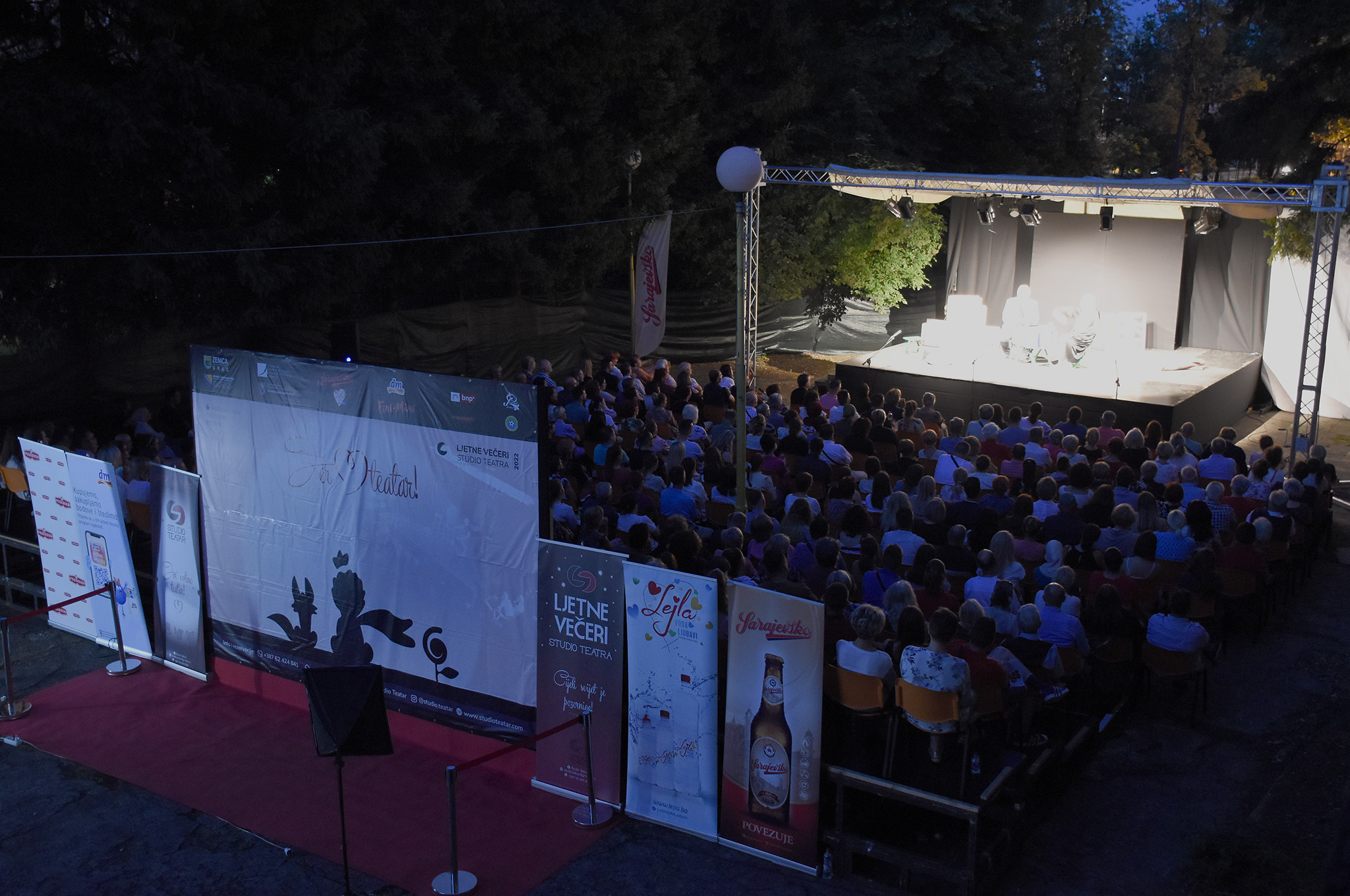 Šesti međunarodni teatarski festival Ljetne večeri Studio Teatra sinoć je završen hit komedijom „Državni lopov“,  a da bi teatarska magija bila stvarna publika je pola predstave gledala ispod nastrešnica i krošnji drveća zbog kiše. Nakon četrdesetak minuta predstava je prekinuta, a na insistiranje publike, skrivene ispod krošnji drveća, balkončića, unaprijed spremljenih kišobrana i suncobrana, glumci Nusmir Muharemović, Irfan Kasumović i Mirza Mušija nastavili su sa igrom i po šesti put nasmijali i oduševili publiku festivala Ljetne večeri Studio Teatra.