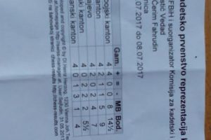 ZDK prvak kadetskog prvenstva reprezentacija kantona – U organizaciji Šahovskog saveza Federacije BiH i suorganizaciji Komisije za kadetski i juniorski šah ŠSFBiH, u Zenici je održano Deseto ekipno kadetsko prvenstvo reprezentacija kantona ŠSFBiH u šahu za 2017.godinu. Prvenstvo je igrano u J.U. „Penzionerski dom sa stacionarom“ u Zenici , u periodu od petka 07.07. do subote 08.07.2017.godine. Učešće je uzelo pet reprezentacija kantona ŠSFBiH.
