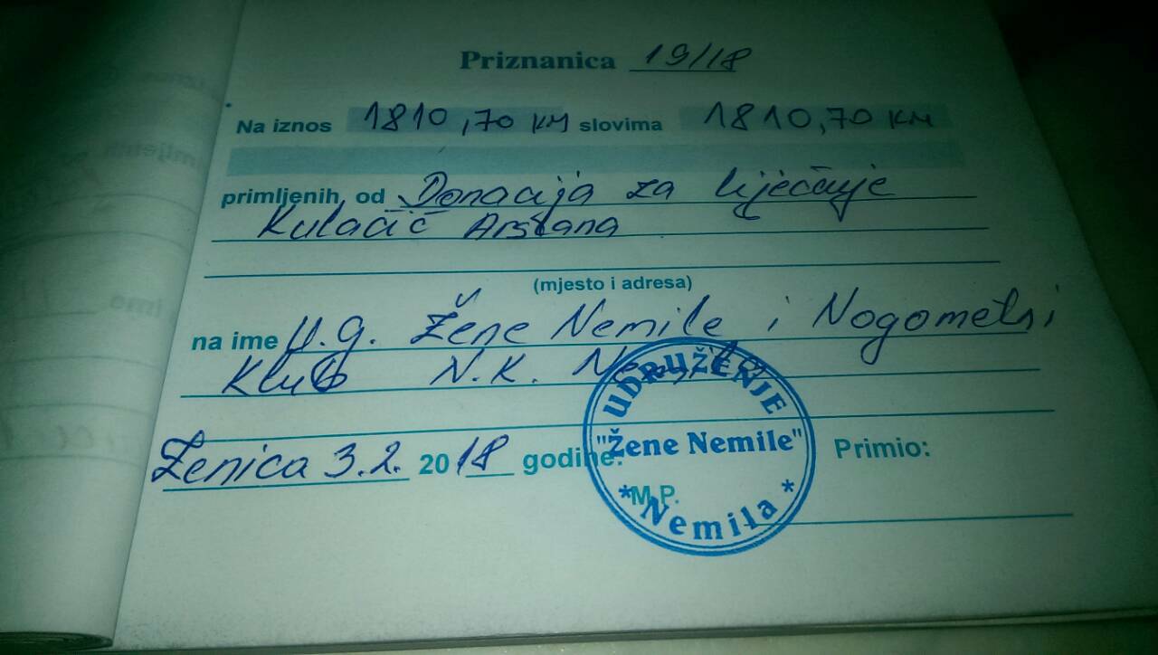 FOTO: Žene Nemile za Arslana – prikupljeno 1.810, 70 KM! Udruženje građana (UG) Žene Nemile Nemila i NK Nemila, u humanoj akciji koju je predvodila predsjednica Aida Čolaković, uspješno su provele danas akciju prikupljanja pomoći našem sugrađaninu, malenom Arslanu.