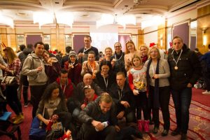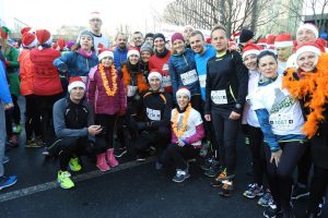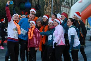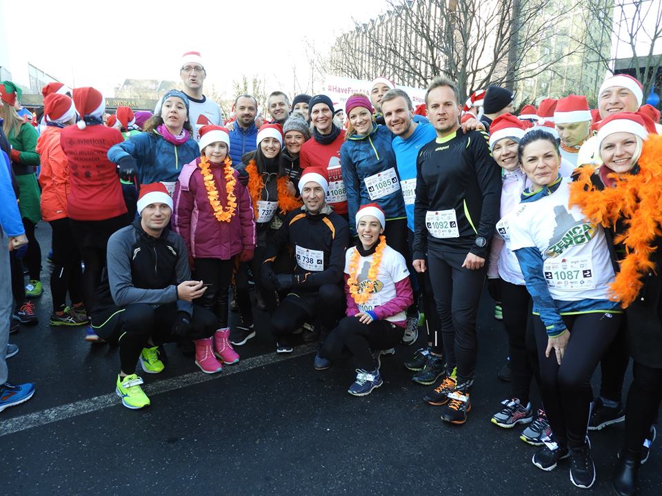 Kolona od tri auta i jednog kombija se zaputila u sitne jutarnje sate kako bi stigla na vrijeme pokupiti startne pakete, popiti kaficu i pripremiti se za utrku. Reunion je bio nekih satak prije starta. Izljubili smo se i izgrlili. Okitili se kojakakvim prazničnim perijem, kapicama, rogovima i lampicama. Skupa smo se zagrijali i mogu slobodno reći da smo bili najglasniji i najrazigraniji pa smo privukli i puno medijske pažnje. J