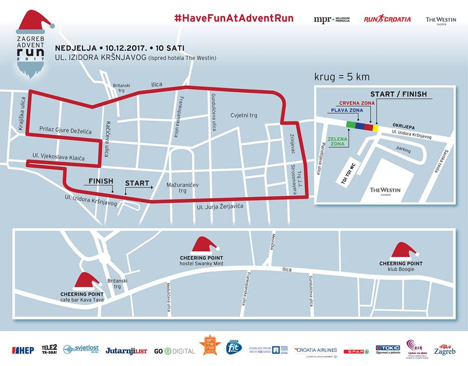 Ovo je bilo drugo izdanje „Zagreb advent run“ utrke na 5 i 10 kilometara. Start i cilj utrke su bili u ulici Isidora Kršnjavog pred hotelom The Westin. Koliko je utrka popularna govori brojka da je na utrci učestvovalo 1300 takmičara. Utrka je i humanitarna jer se prikuplja novac za pomoć udruzi „Ljubav na djelu“ roditelja djece oboljele od malignih bolesti koja se liječe u Klinici za dječje bolesti u Zagrebu. Želimo im puno sreće i da što prije ozdrave.