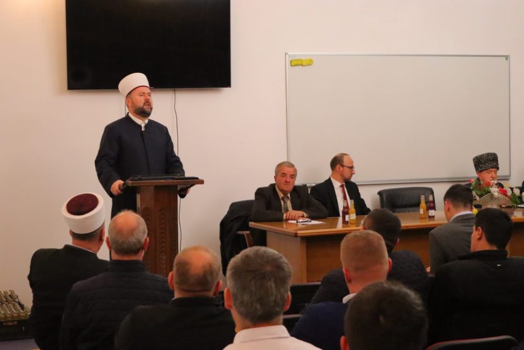 Moderator tribine bio je glavni imam Medžlisa Islamske zajednice Zenica mr. Jakub-ef. Salkica koji je podsjetio na bogatu biografiju rahmetli Mirsad ef. Mahmutovića.