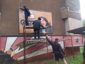 Mural koji krasi zidove njegove mahale rezultat je inicijative sugrađana i prijatelja Harisa Burine. Ovaj umjetnički rad simbolično čuva sjećanje na njegov lik i doprinos zajednici, naglašavajući njegov pozitivan trag među Zeničanima i zahvalnost Burini na tome što je svoj grad Zenicu predstavljao na najbolji mogući način.