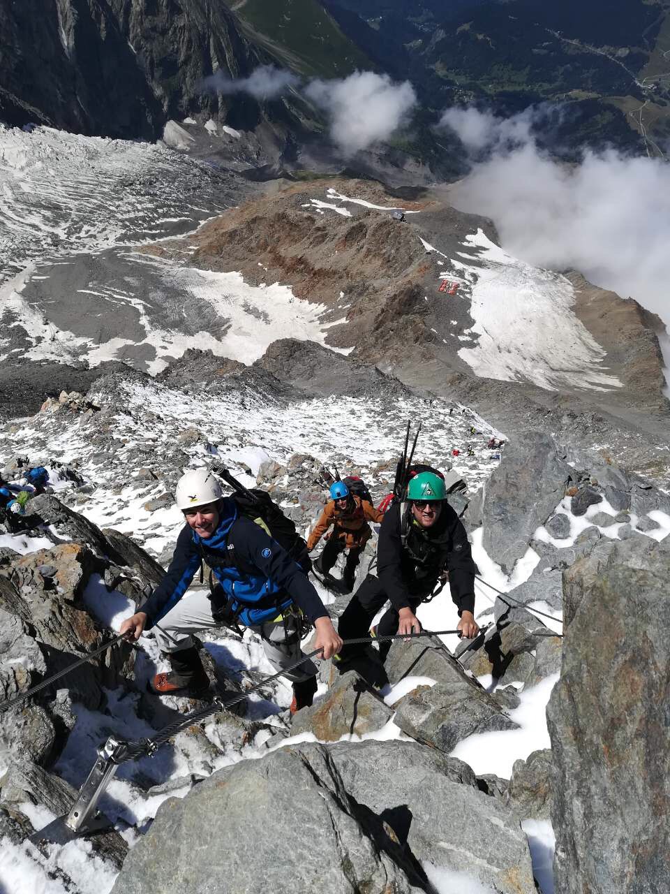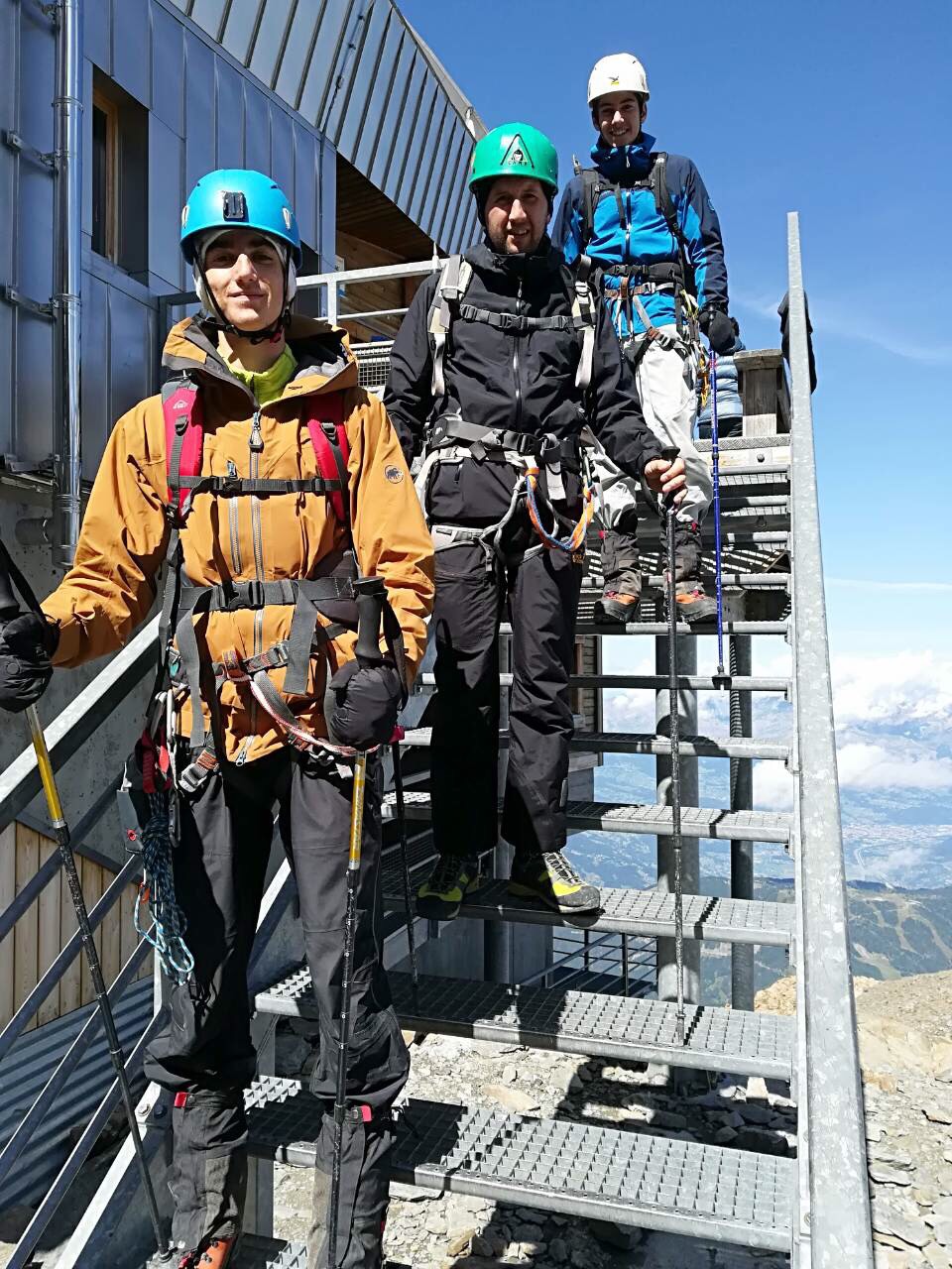 Pothvat započinje u Chamonixu u kampu gdje se čeka povoljna vremenska prognoza. Iz Le Fayeta su vozom – Tramway du Mont-Blanc došli do početne tačke uspona na 2372 m.