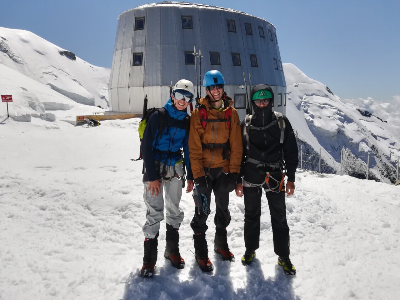 Prva duža pauza je na domu Tête Rousse na 3167 m. Alpinistička skoro vertikalna staza između dva doma prolazi kroz tzv. “Kuloar smrti” koji je prozvan tako zbog konstantnog odrona i opasnosti od kolizije sa odlomljenim stijenama. U dom Refuge du Goûter 3815 m su stigli u poslijepodnevnim satima gdje su prenočili.
