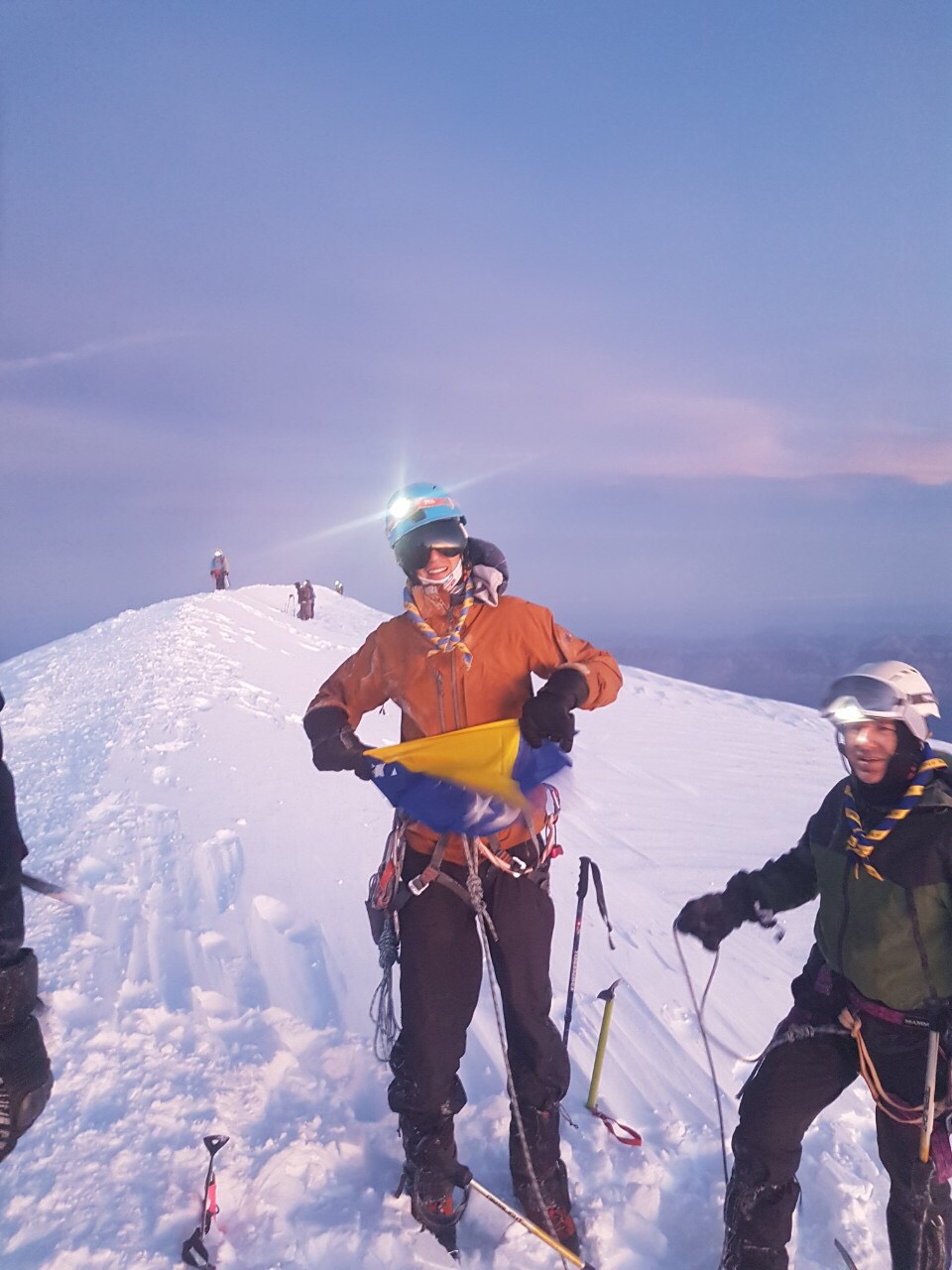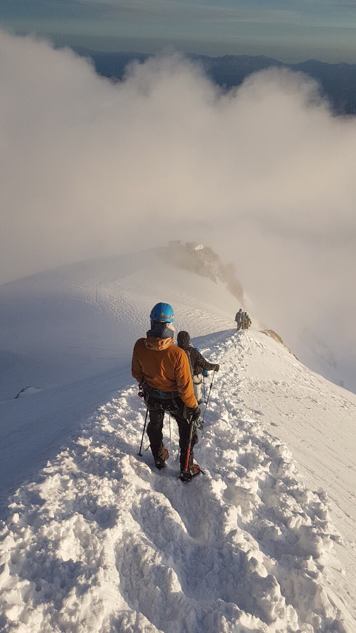 Uspon na vrh obično započinje u noćnim satima, te se tim oko 1 sat poslije ponoći pod svjetlom ceonih lampi zaputio prema vrhu zahtjevnom stazom nazvanom “Žilet” koja je pri temperaturi od oko -15 stepeni i udarima vjetra oko 50 km na sat uz opasnost propadanja u ambis na talijansku ili francusku stranu planine predstavljala veliki izazov. Penjanje je dodatno otežala i pojava simptoma visinske bolesti kod jednog člana tima. Vrh su dosegli u zoru oko 06.05 sati, gdje su uprkos snažnim naletima vjetra uspjeli zabilježiti par fotografija i pozdraviti izlazak sunca. Istim putem su se do večeri spustili u bazu gdje su proslavili uspon zajedno sa članovima makedonskog tima i dvojicom alpinista iz Sarajeva s kojima su se družili i tokom uspona.