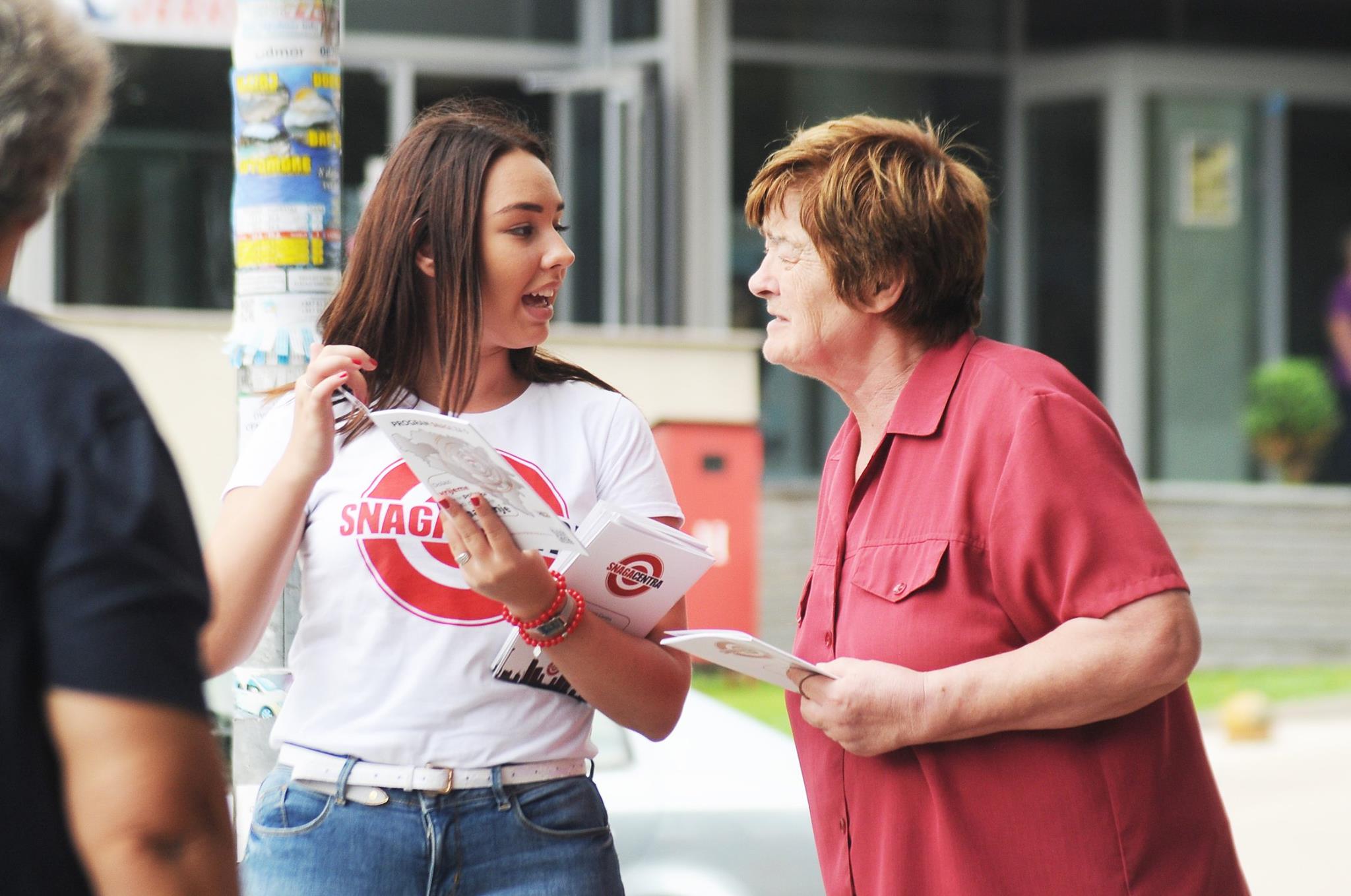Naši aktivisti su sugrađanima predastavili i dali na izučavanje i čitanje oko 40.000 primjeraka PROGRAMA SNAGE ZA 5 – za razliku od većine političkih protivnika, koji su se u nedostatku vlastitih programa isrpljivali međusobnim svađama i omalovažavanjem, naši mladi aktivisti su predstavili ozbiljan i realan Program, koji hoćemo i možemo provesti u djelo, ukoliko 2. oktobra izaberete Snagu Centra i našeg kandidata za gradonačelnika Eldina Vrače.