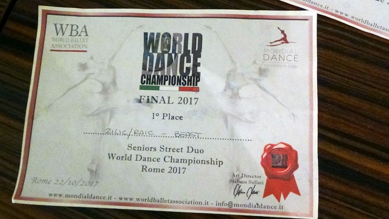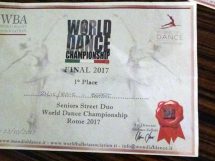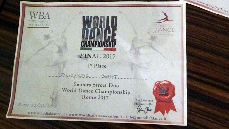 Kako ističe trenerica Belma Sarvan, ovo takmičenje je izuzetno teško, kriteriji su veliki, a žiri kojeg su sačinjavali profesionalni plesači iz Italije, Amerike i samog Rima izuzetno strogi. No i pored velikog broja takmičara i težine samog prvenstva, plesačice Martina Raić i Dajana Zilić osvojile su prvo mjesto u kategoriji ‘duo’ za seniore: “Ovo je najveće takmičenje na kojem smo ikada bili. Mi smo prezadovoljni i presretni. Nisam mogla da vjerujem da se to dešava. Kada smo izašli na scenu to je nevjerovatno, osjećaji se ne mogu opisati. Prezadovoljna sam i stvarno mi je drago što smo napokon postali neko i nešto. Postojimo već osam godina i nikada nismo bili na ovako velikom takmičenju”, kazala je Dajana.