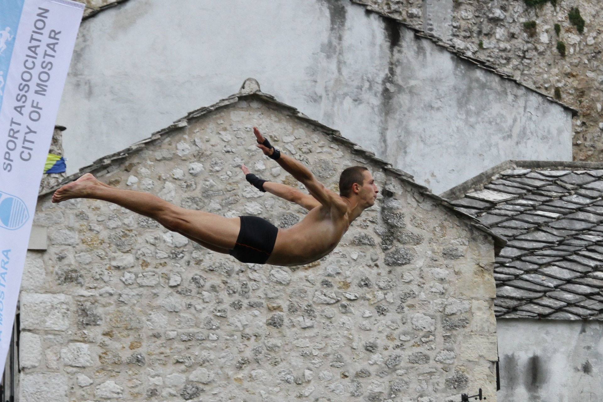 Foto: Zeničke laste ponosno predstavljaju naš grad na Starom mostu u Mostaru –  Sanel Duvnjak je rođen u januaru 1984. Ove godine, ove nedjelje, posljednjeg dana jula, čak 15. put će skakati sa Starog mosta. Prvi put je skočio sa nepunih 17 godina.