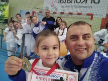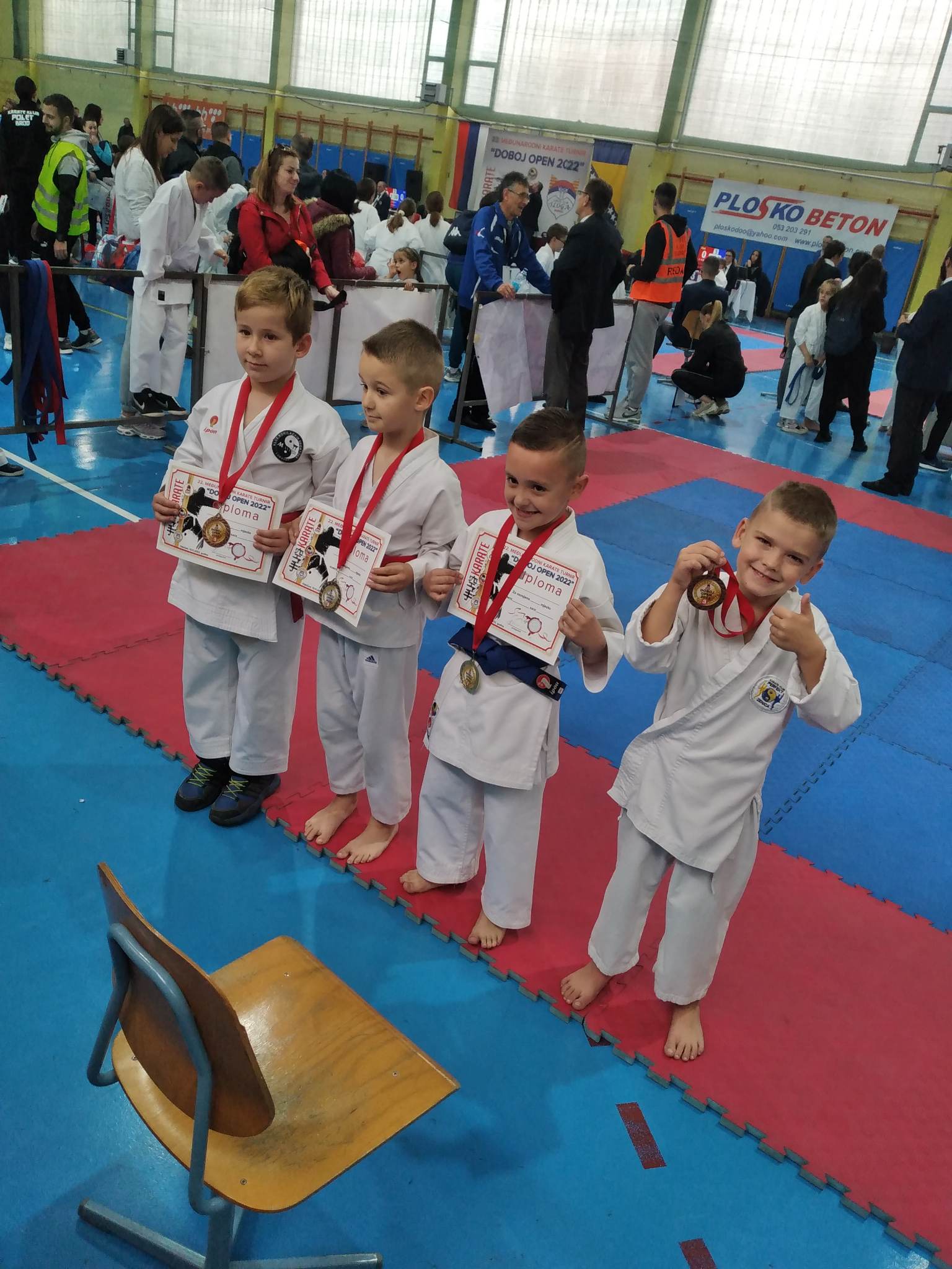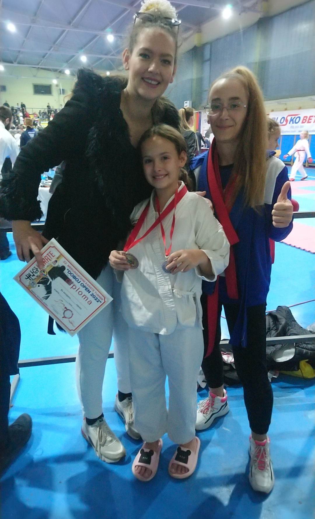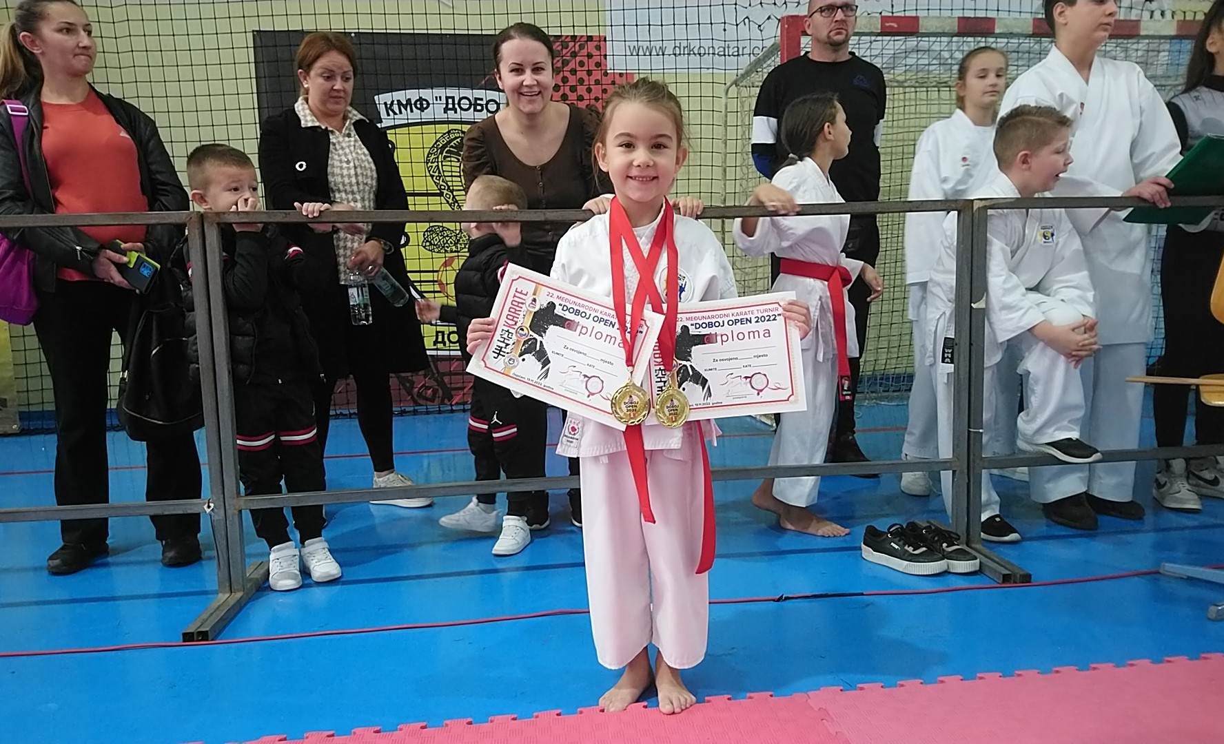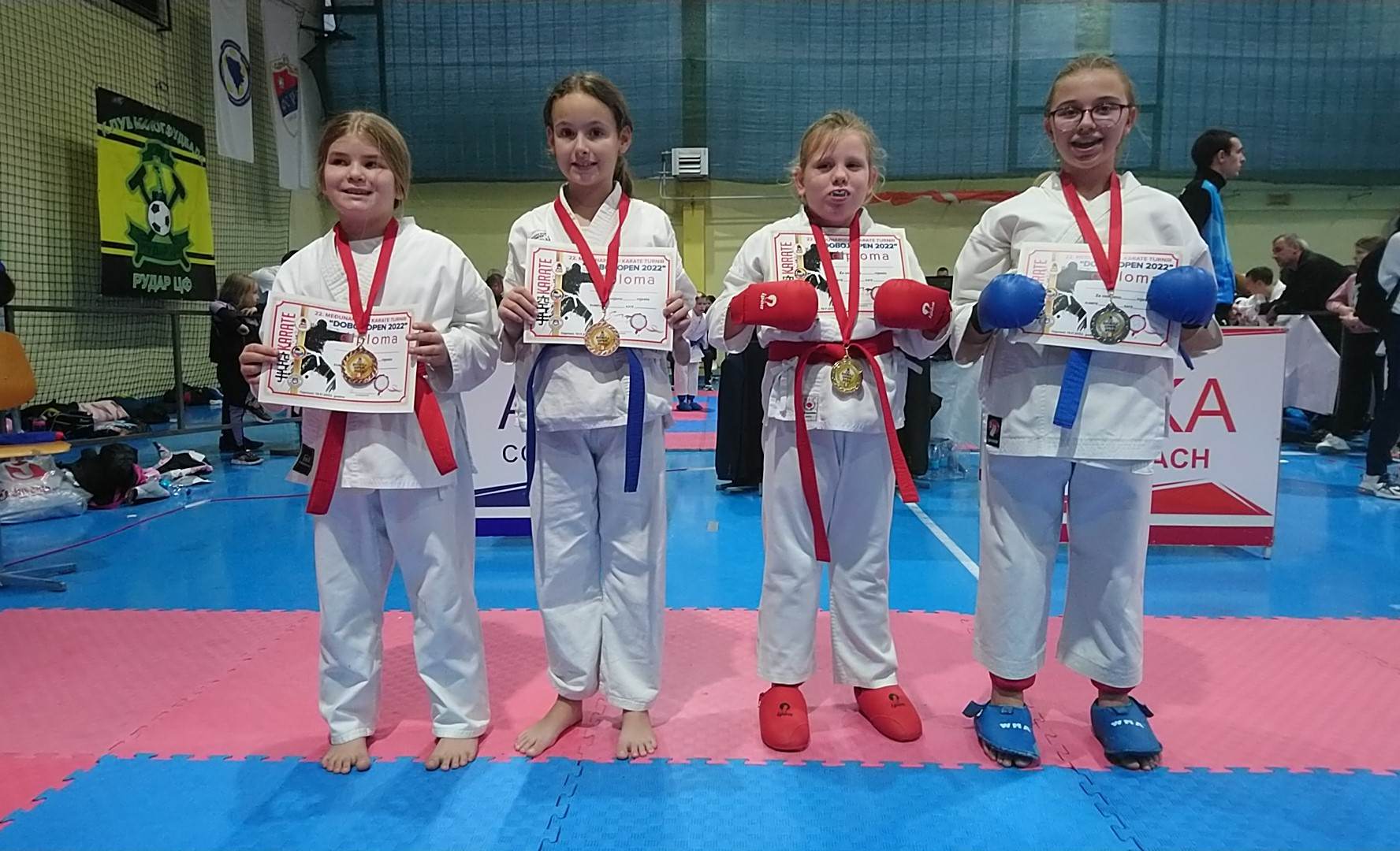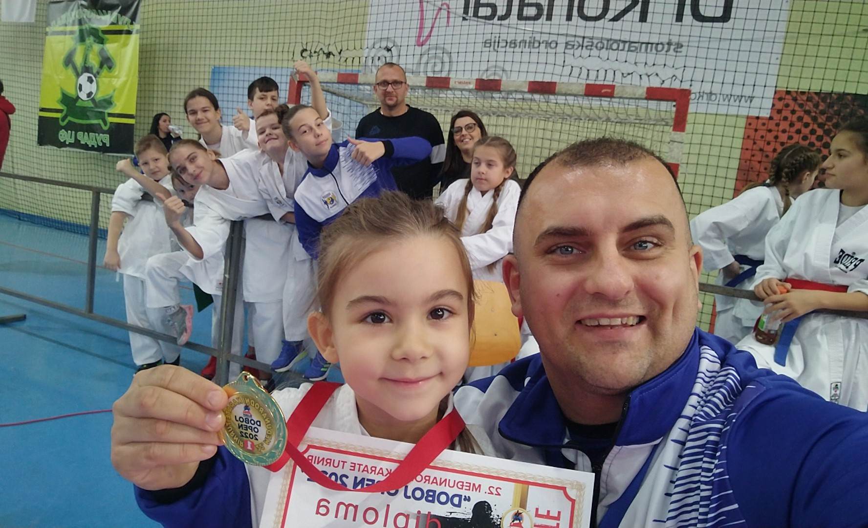 Posebno moramo izdvojiti i pohvaliti našu takmičarku Ejnu Bešo koja na posljednja tri turnira osvaja po dvije zlatne medalje u katama u svojoj i starijoj kategoriji. Ejna je izuzetno talentovana djevojčica, izuzetno uporna i temeljita u treniranju. I najvažnije jeste da je roditelji redovno i svaki dan dovode na treninge.