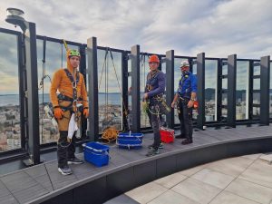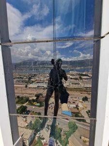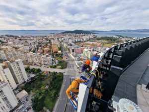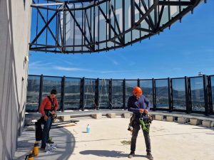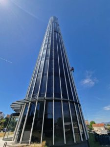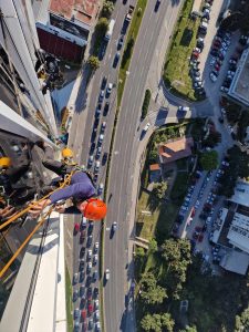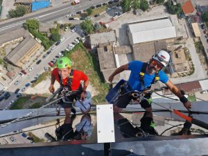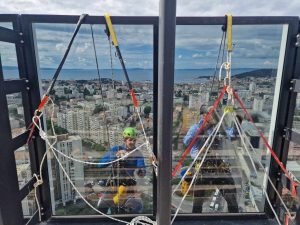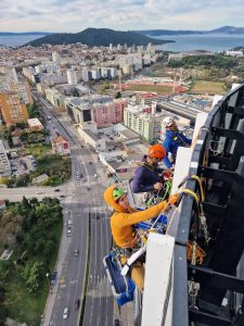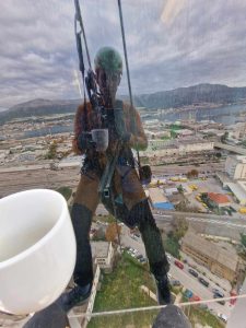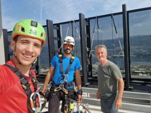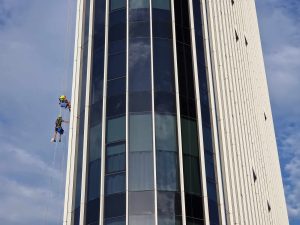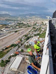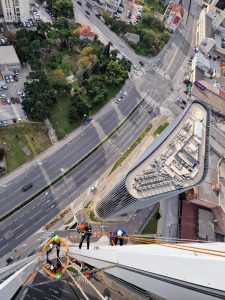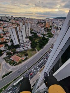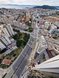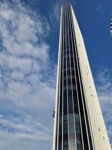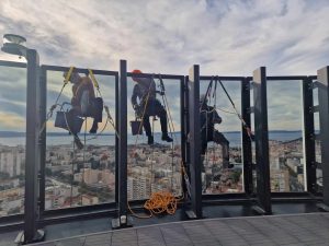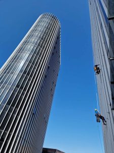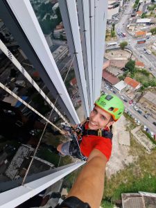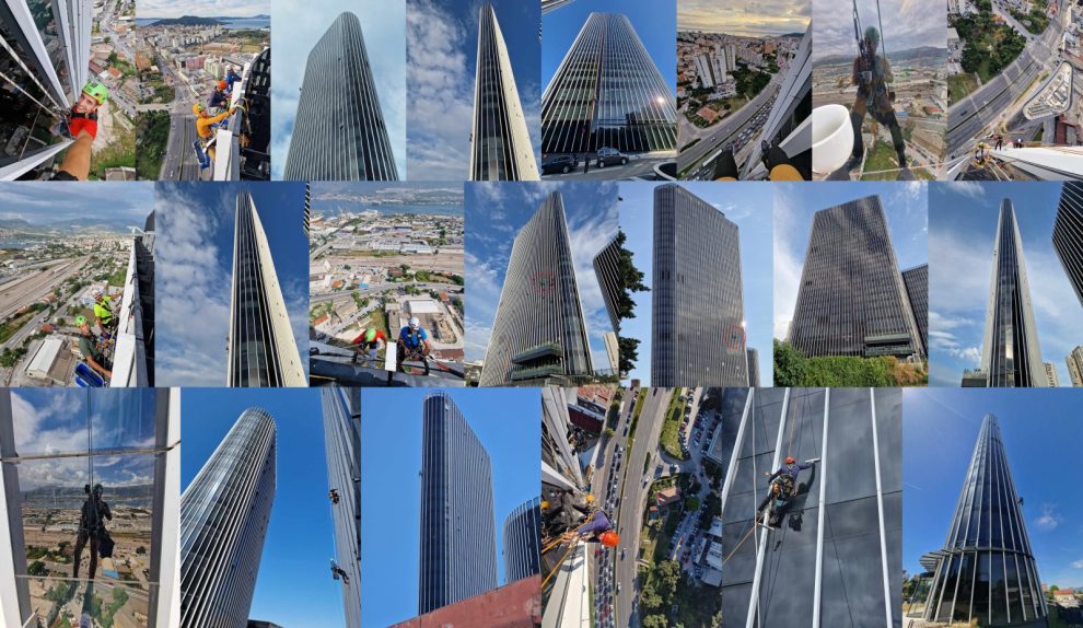 Tim zeničkog Extreme Sports kluba Scorpio obavio je proteklih dana posao čišćenja fasade na jednom od najimpresivnijih zdanja Hrvatske, Irijan Durmo, Miloš Milanović i Eldin Hajdar – standardni tim koji već nekoliko godina održava fasadu bivšeg WestGate Towera, poznatijeg kao Dalmatia Tower, jednog od dva dijela WG kompleksa u splitu. .